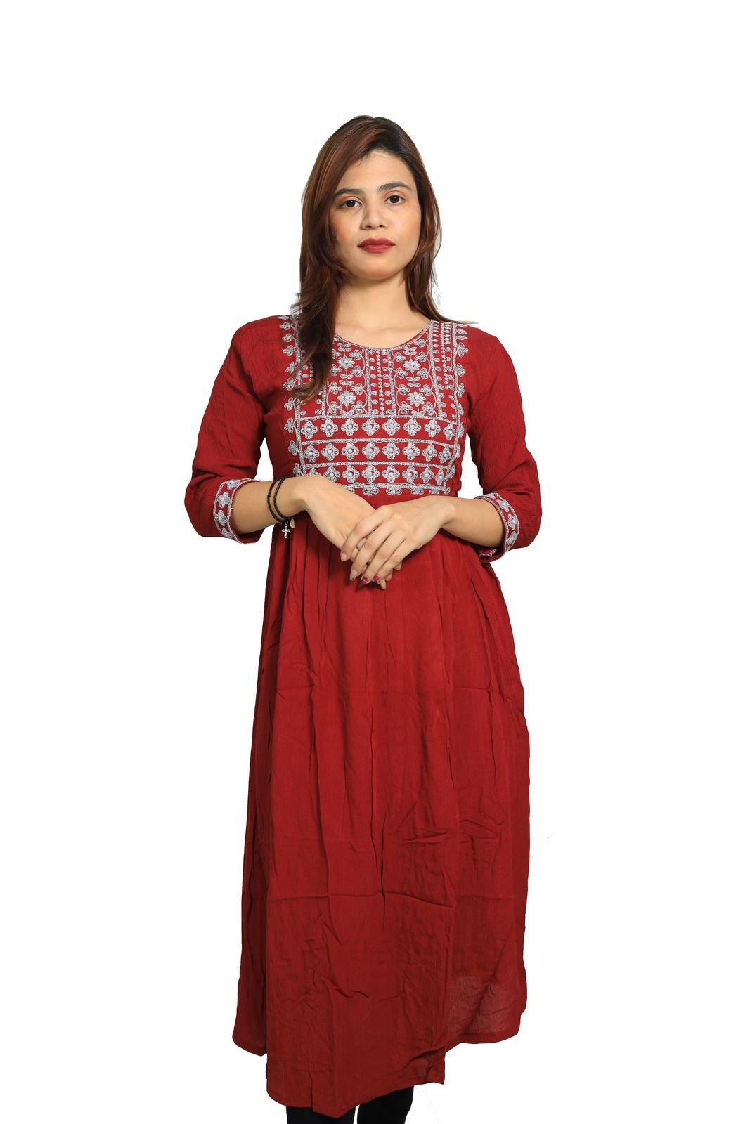 Women loves to wear kurtis of any age group. The fashion is not only limited upto married women but also to the teenagers. For any traditional day, poojas or any religious program, kurtis are mostly used to wear by ladies which gives positive, ritualistic and ceremonial vibes. The recognization of kurtis is still going on in 21st century. So, We have brought you a full collection of embroidery kurtis which is made of Rayon and designed for you plesant and comfy.