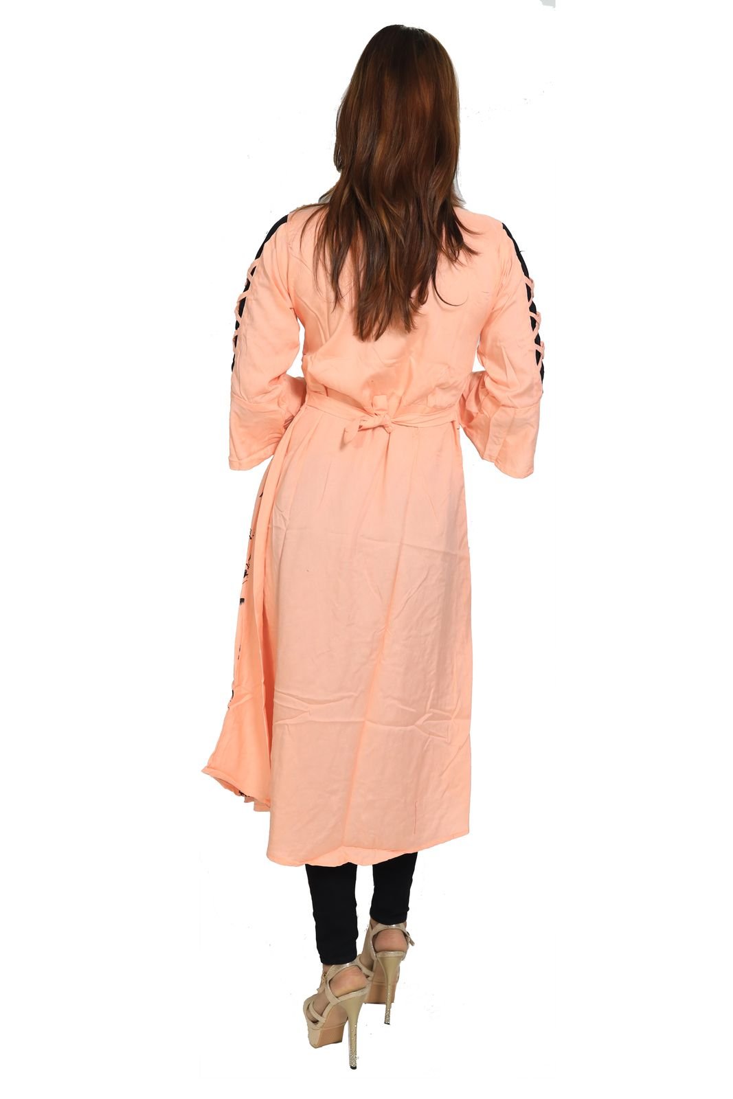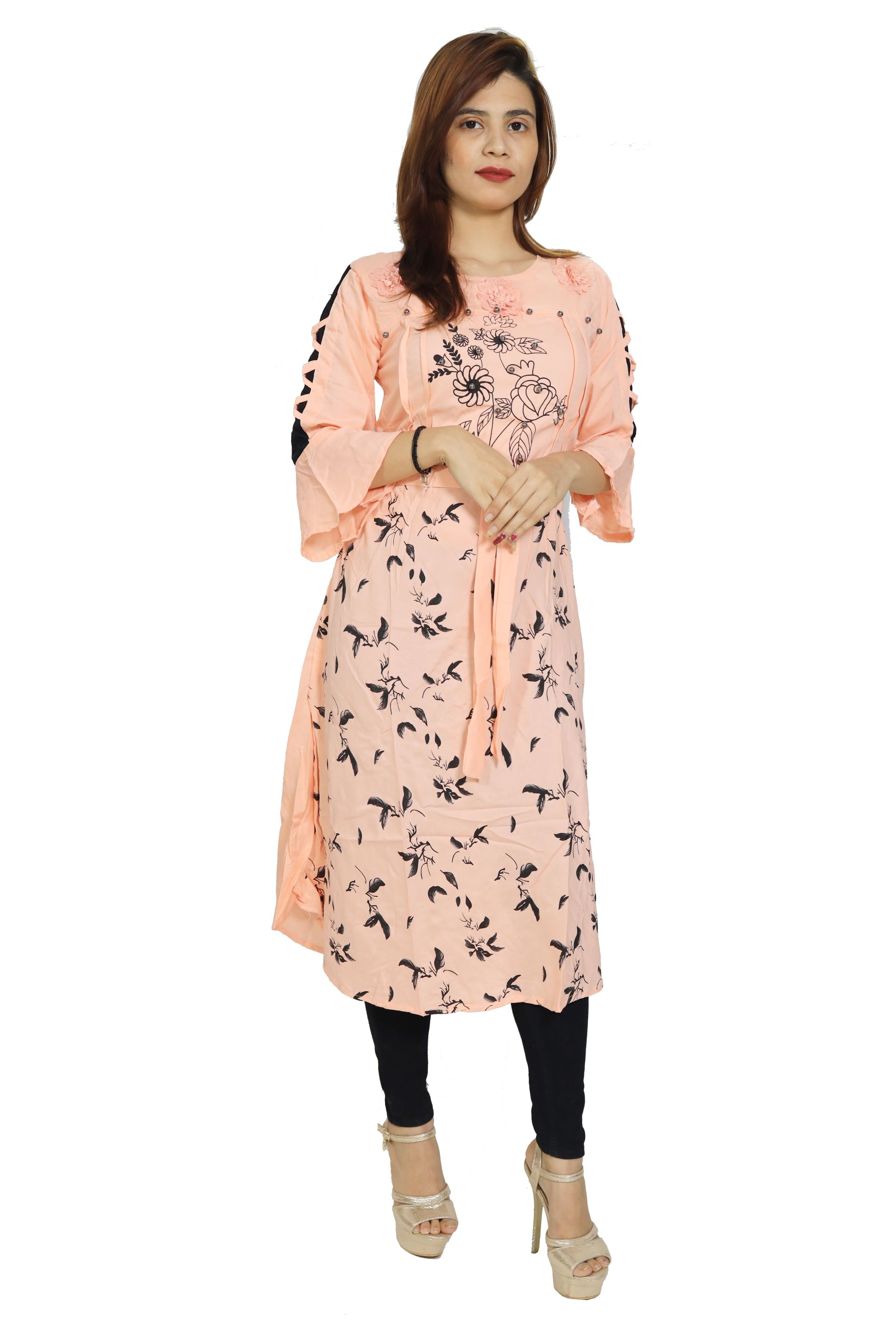Black feather printed embroided straight Kurti for Womens/ girls (Peach Colour Kurti) - Made up of Rayon and designed for you plesant and comfy