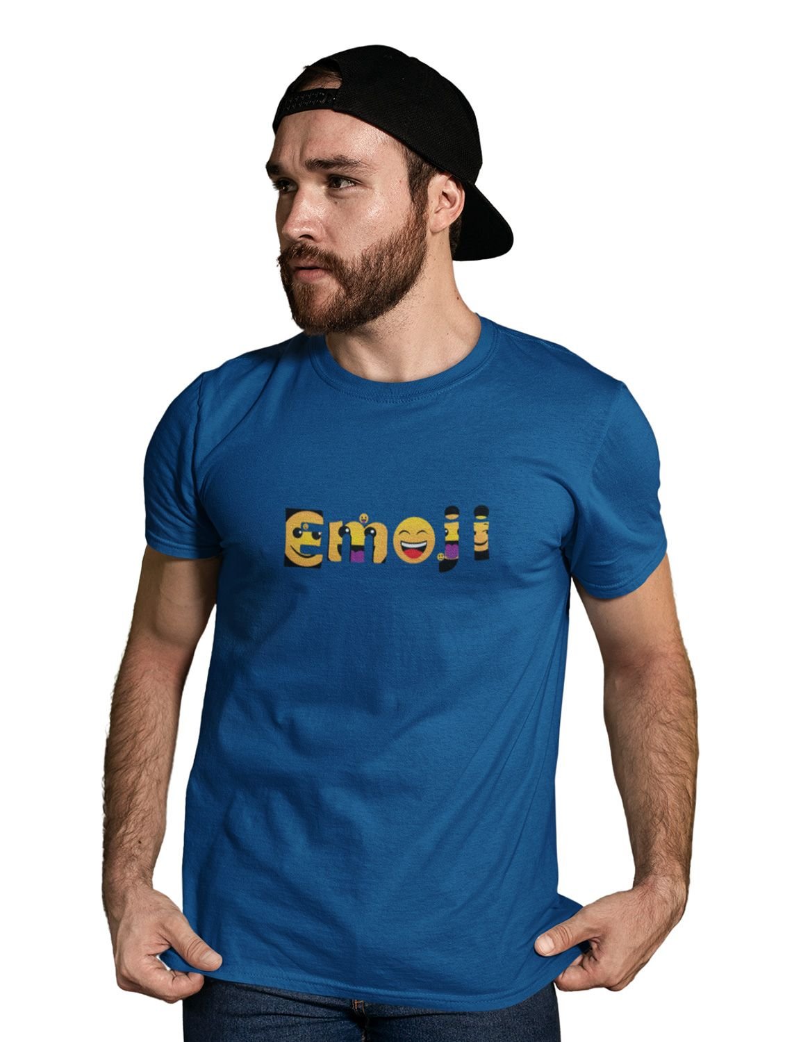 Emoji Pattern in Alphabets Printed T-shirt (Blue) - Clothes for Emoji Lovers - Foremost Gifting Material for Your Friends and Close Ones