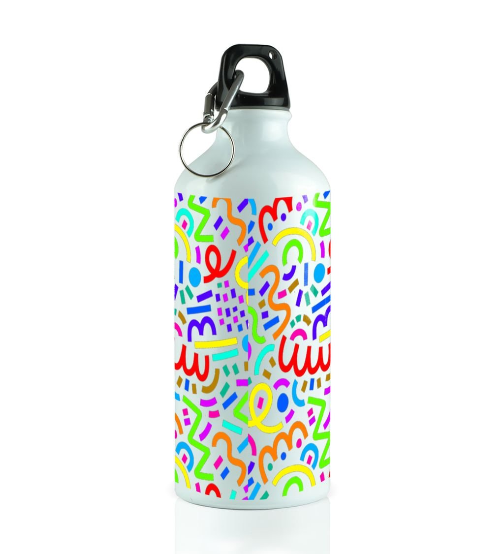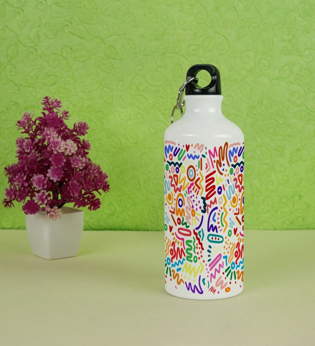 Enjoy a Splash of Color with Fun Line Doodles on Aluminium Water Bottle 600ml