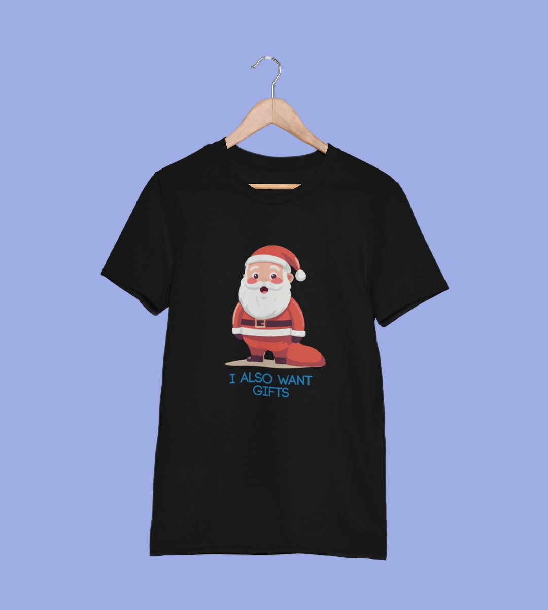 Even Santa Wants Gift: Cute Printed T-shirt (Black) Perfect Gift For Boys Girls