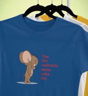 Even Tom Has A Valentine: (Blue) T-Shirt For Singles With Print