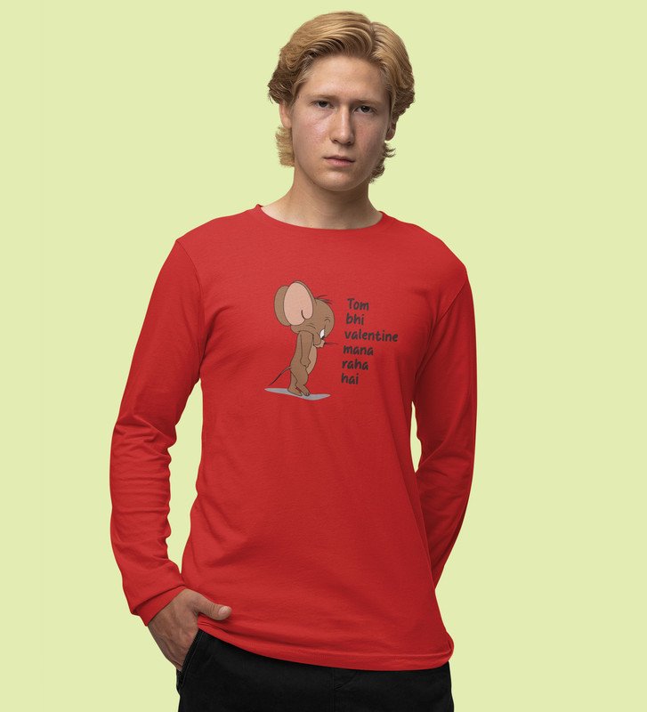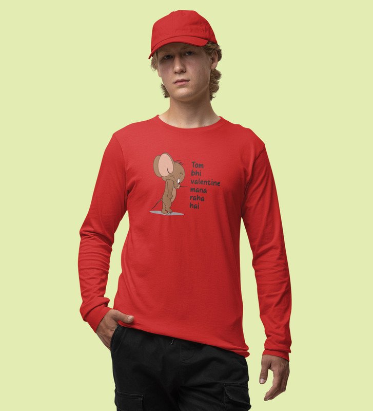 Even Tom Has A Valentine: (red) Full Sleeve T-Shirt For Singles With Print