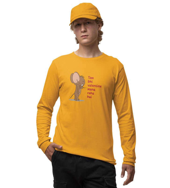 Even Tom Has A Valentine: (yellow) Full Sleeve T-Shirt For Singles With Print