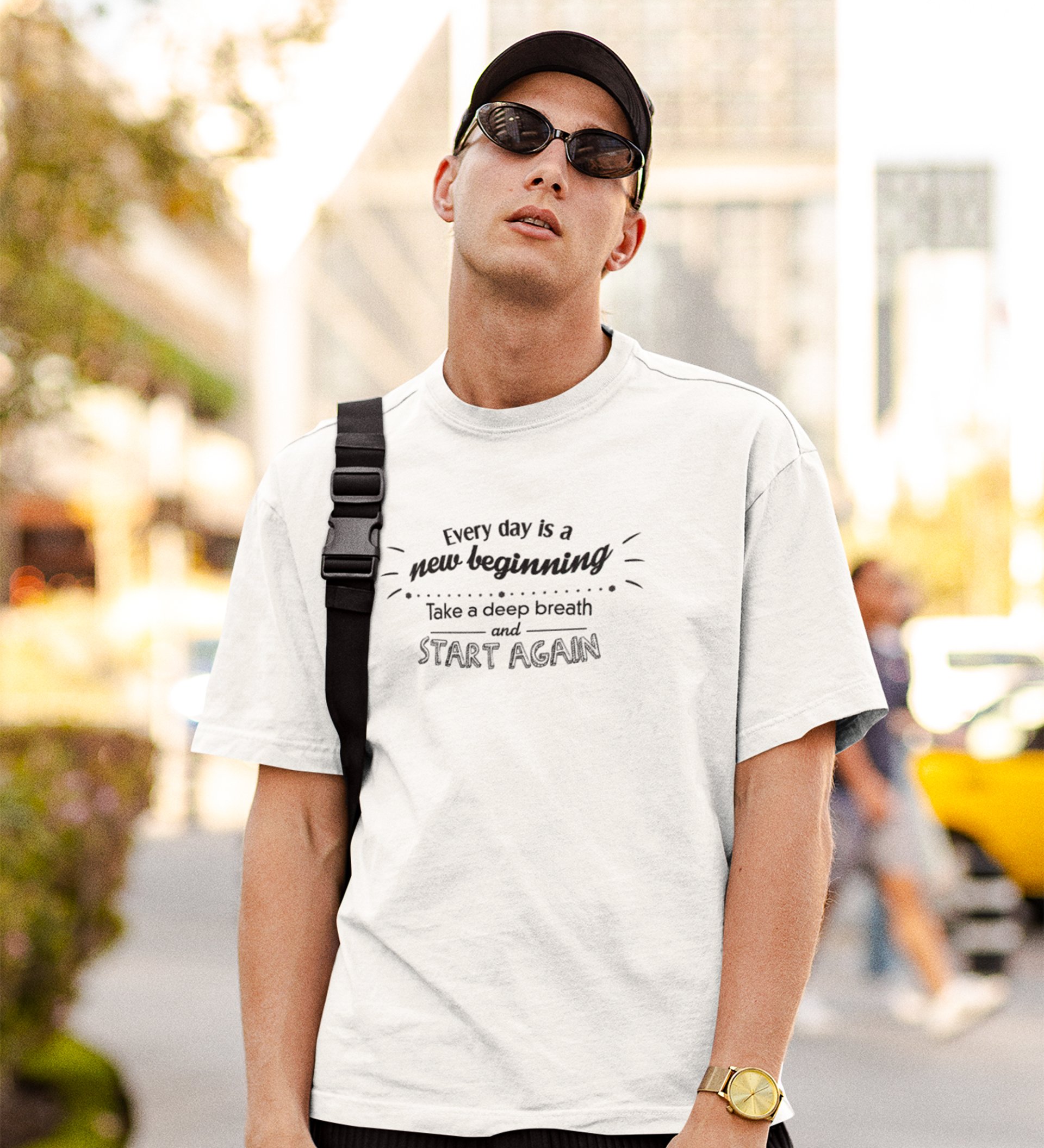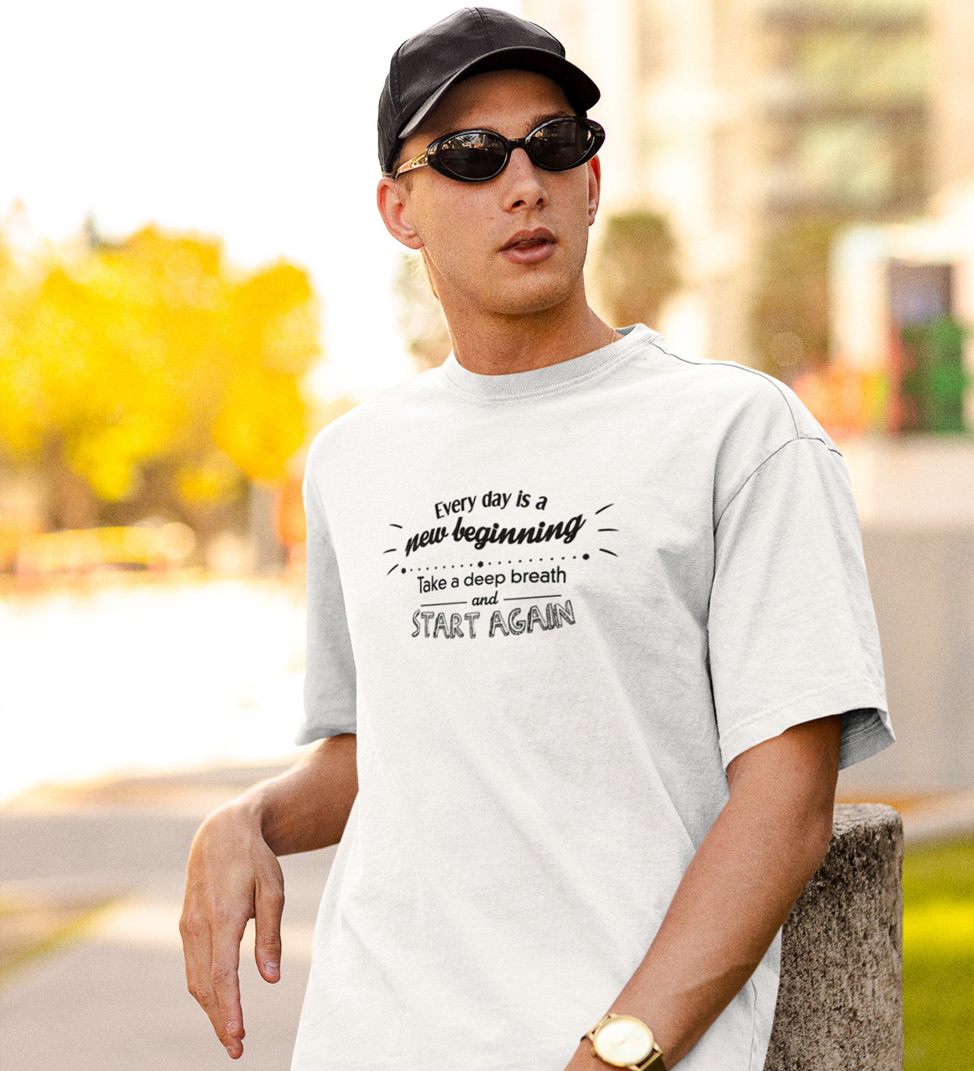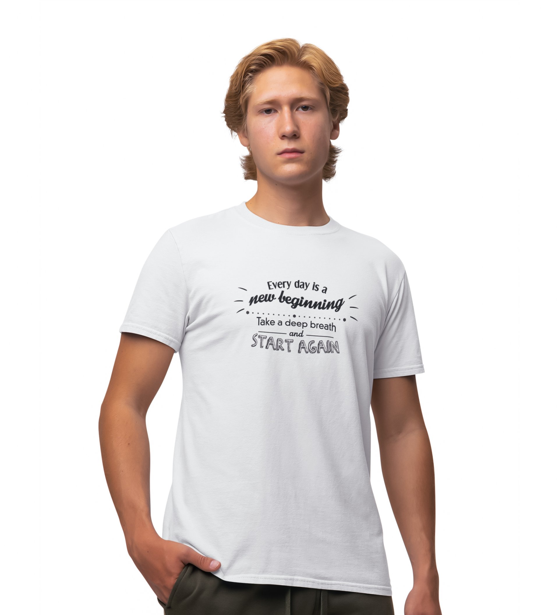 Start Again White Round Neck Cotton Half Sleeved Men's T-Shirt with Printed Graphics