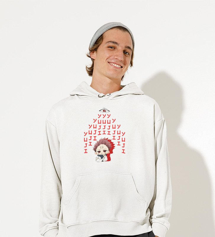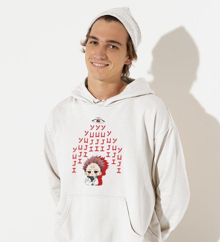 Evil Eye Itadori Cotton White Printed Hoodies For Mens and Boys