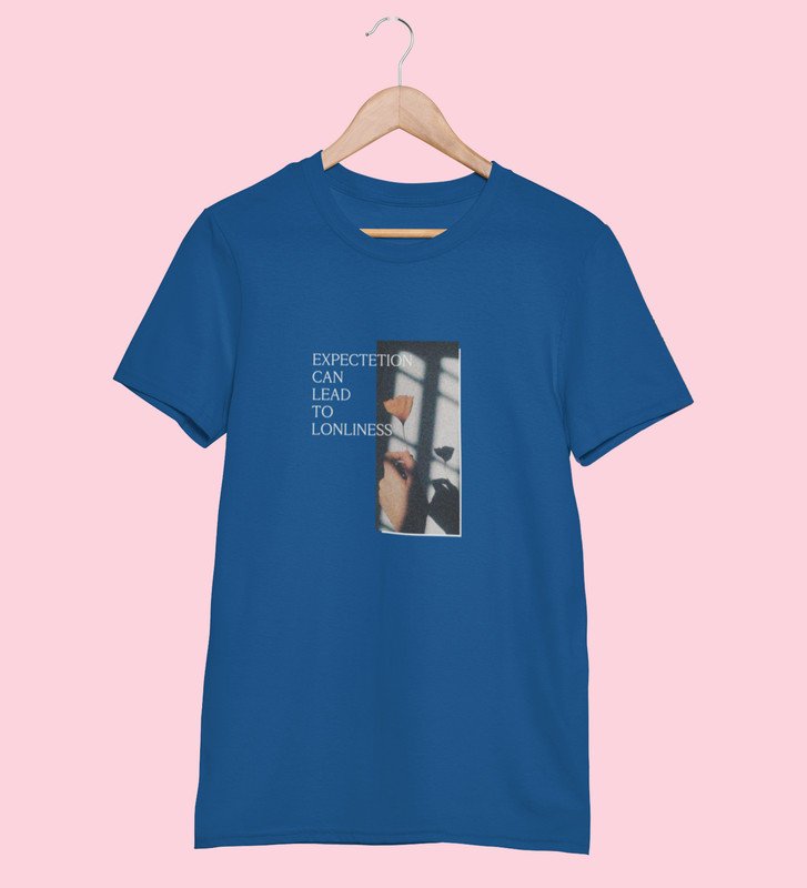 Expectation Hurts,Bold and Beyond: Blue Front Printed Round Neck T-Shirt - Men's Fashion Forward