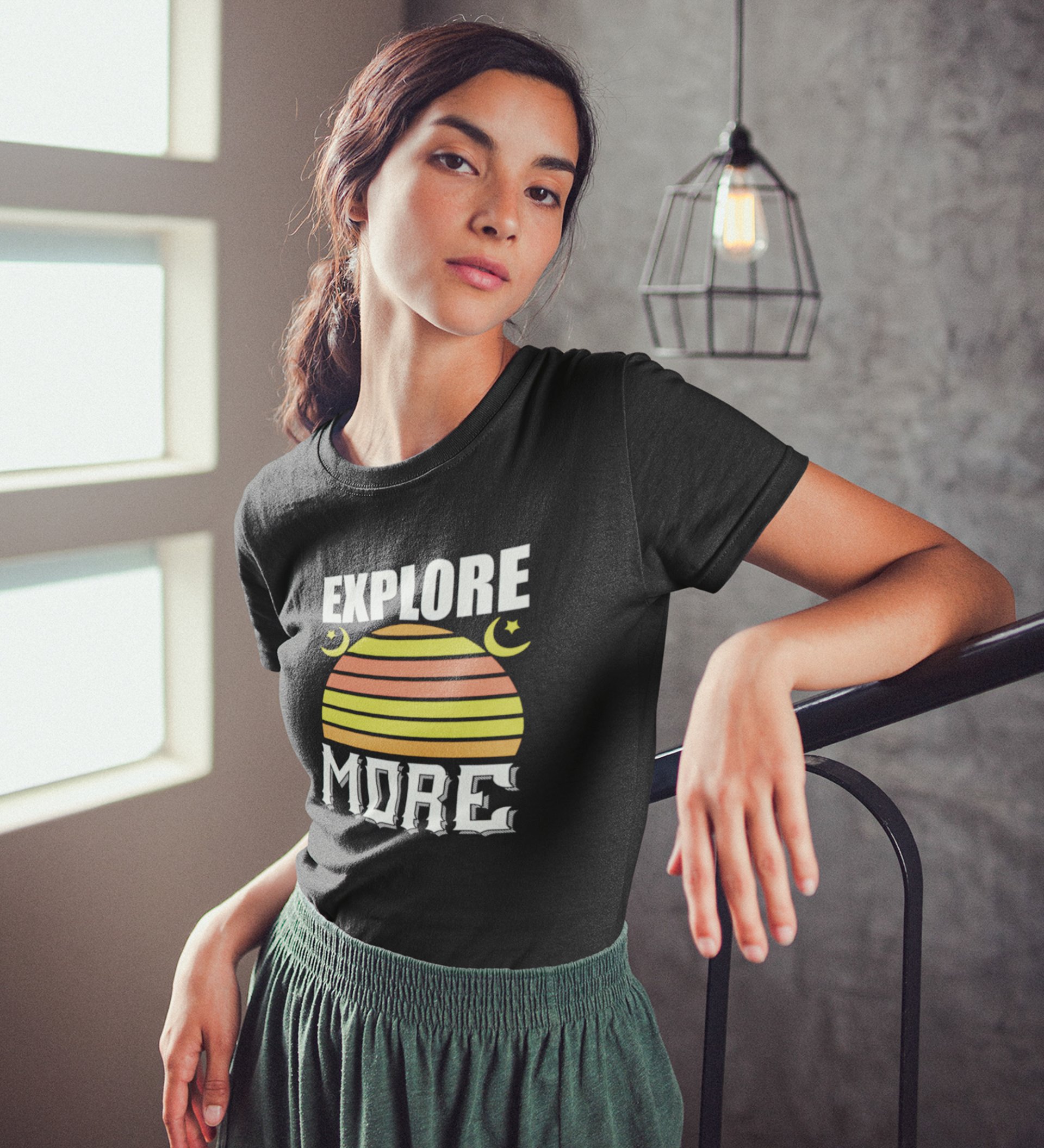 HopOfferExplore More Black Round Neck Cotton Half Sleeved Women's T-Shirt with Printed Graphics