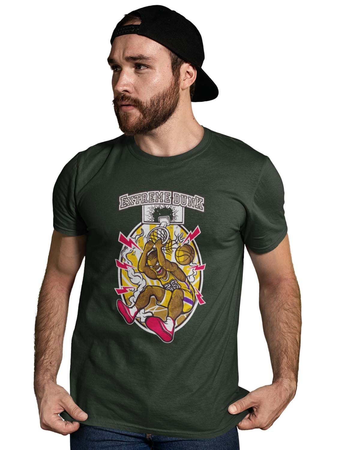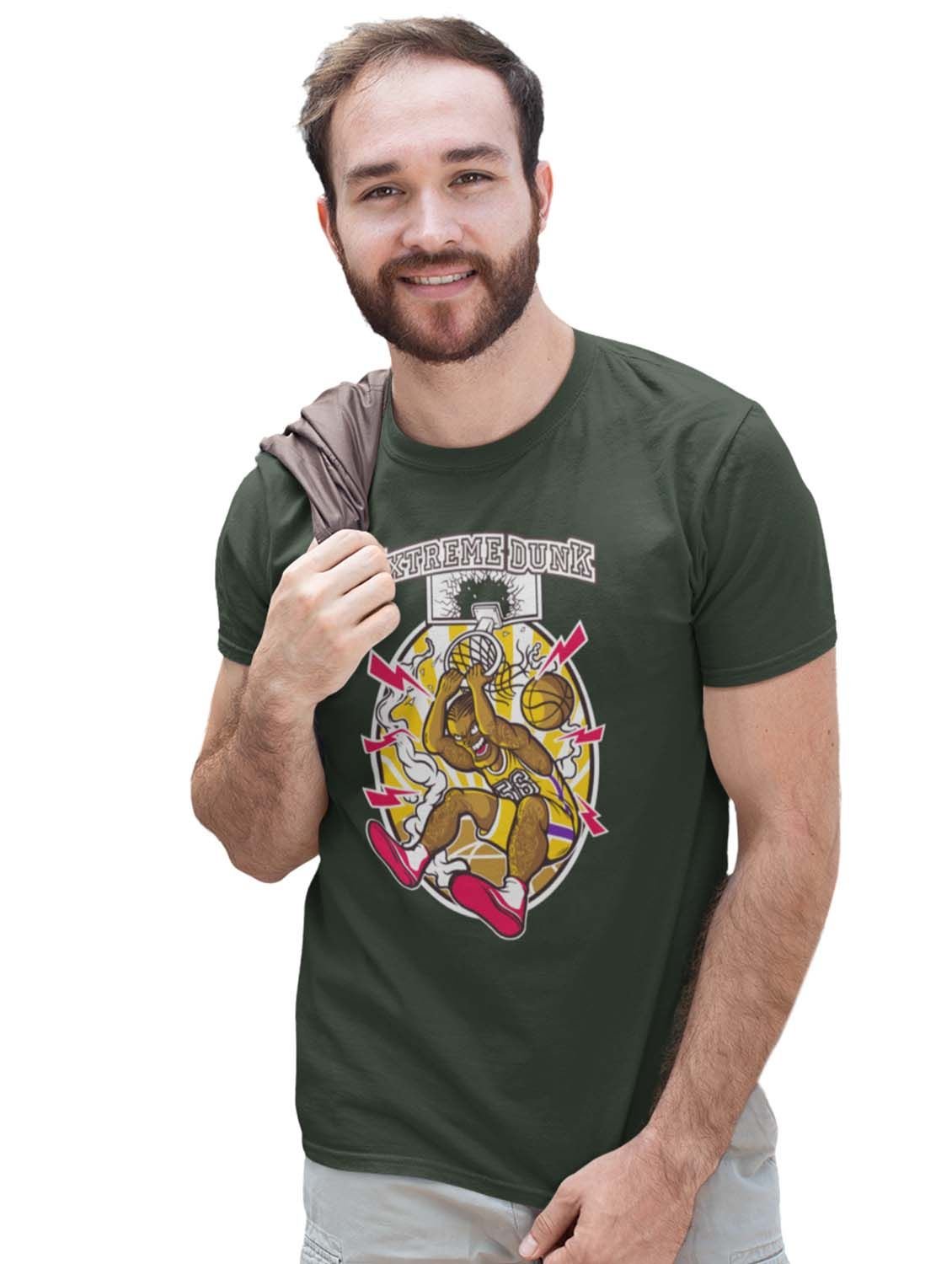 The Dunk Green Round Neck Cotton Half Sleeved T-Shirt with Printed Graphics