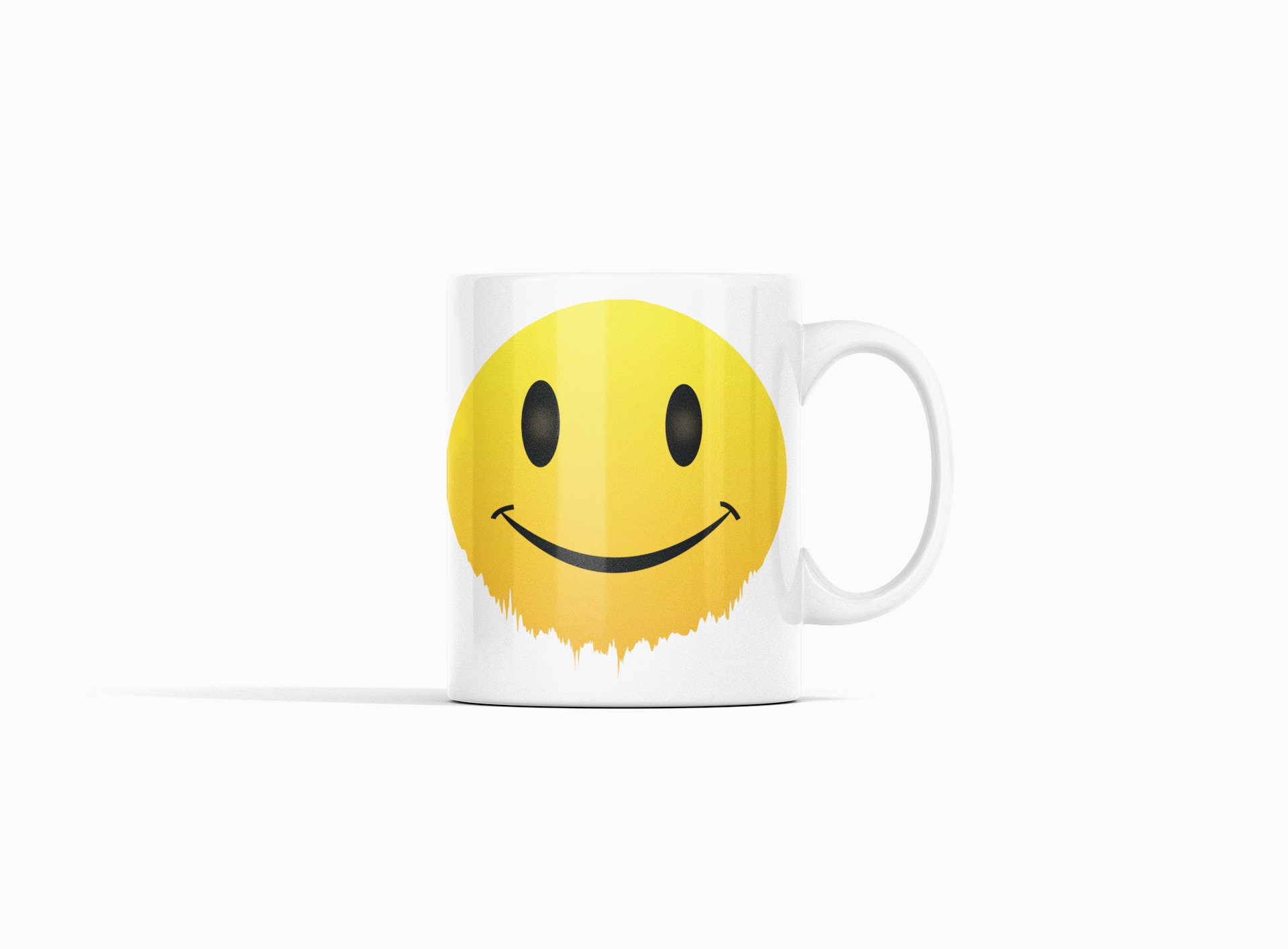 Faded Smile Emoji- emoji printed ceramic white coffee and tea mugs/ cups for emoji lover people