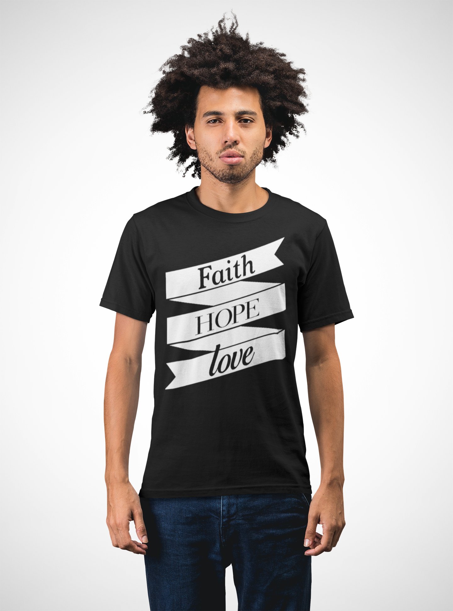 Faith hope love - Black - printed T-shirts - Men's stylish clothing - Cool tees for boys