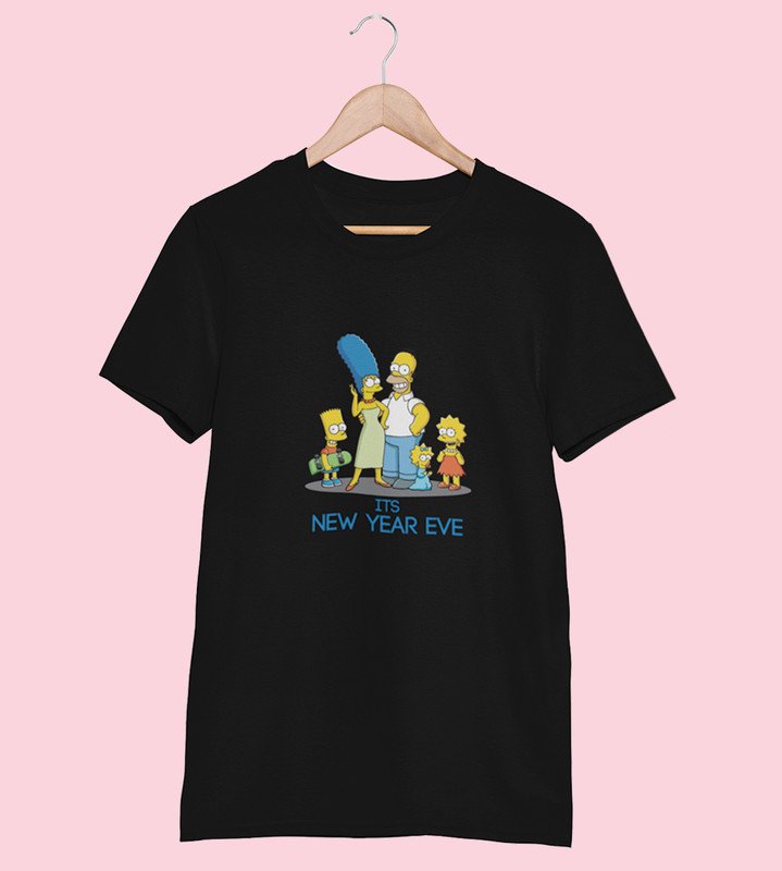 Family's New Year Black Graphic Printed T-shirt For Mens Boys