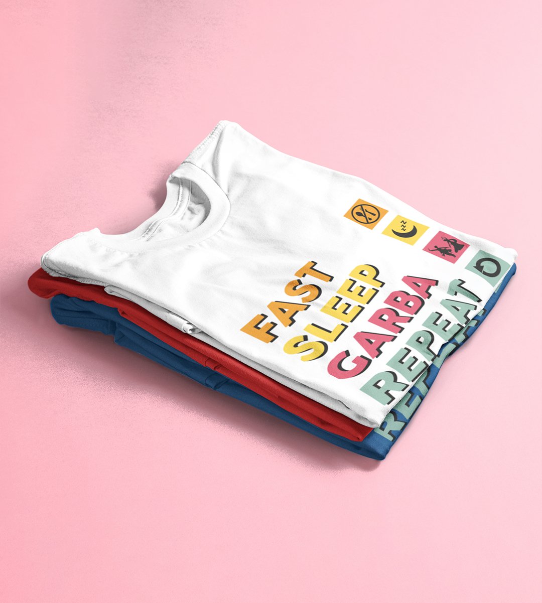 Fast sleep garba repeat printed unisex adults round neck cotton half-sleeve white tshirt specially for Navratri festival/ Durga puja