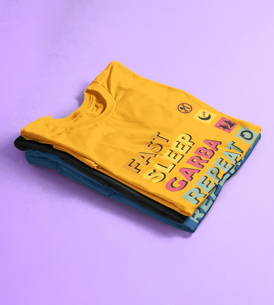 Fast sleep garba repeat printed unisex adults round neck cotton half-sleeve yellow tshirt specially for Navratri festival/ Durga puja