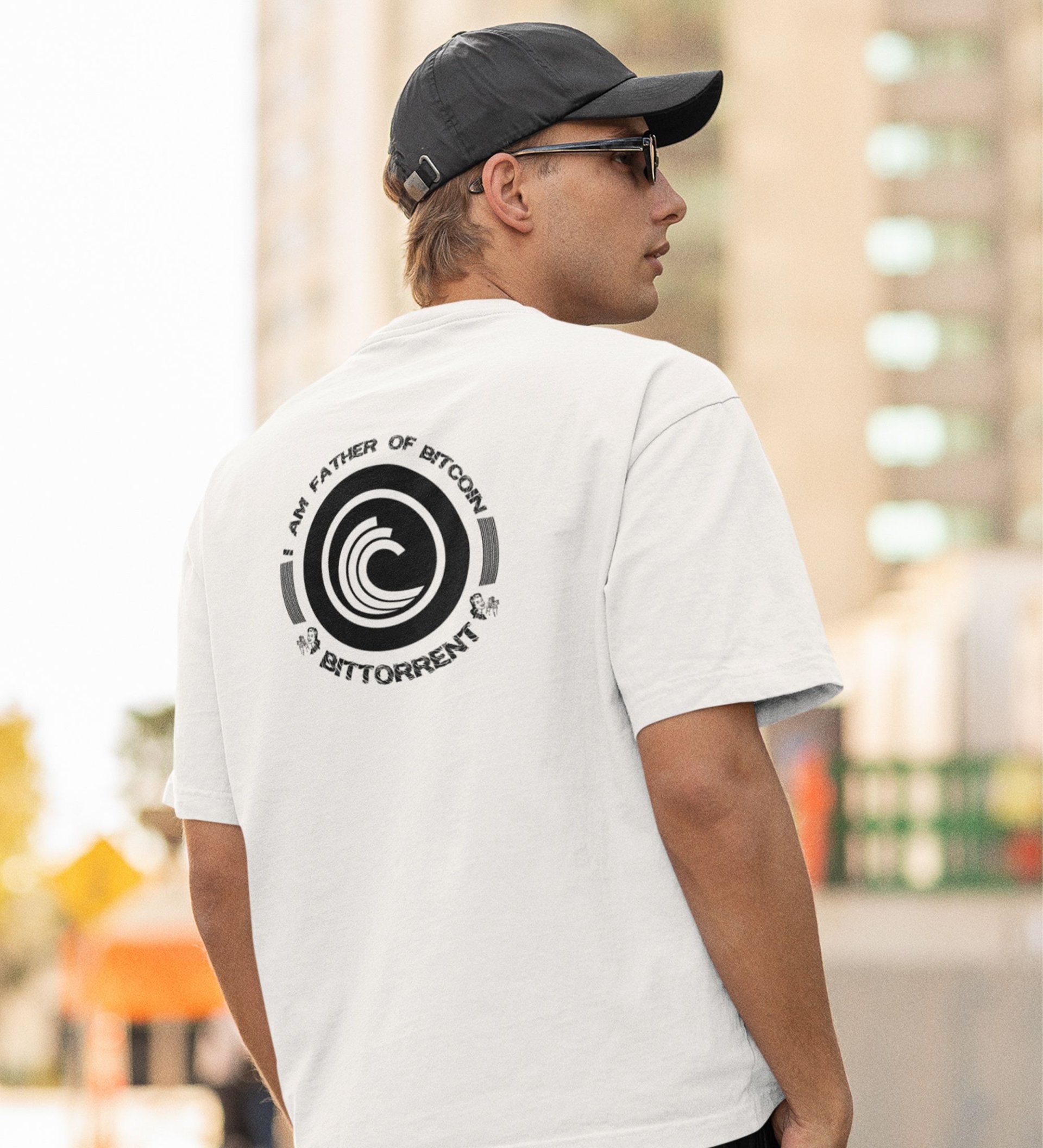 Father Of Bitcoin Wings White Round Neck Cotton Half Sleeved Men's T Shirt with Printed Graphics