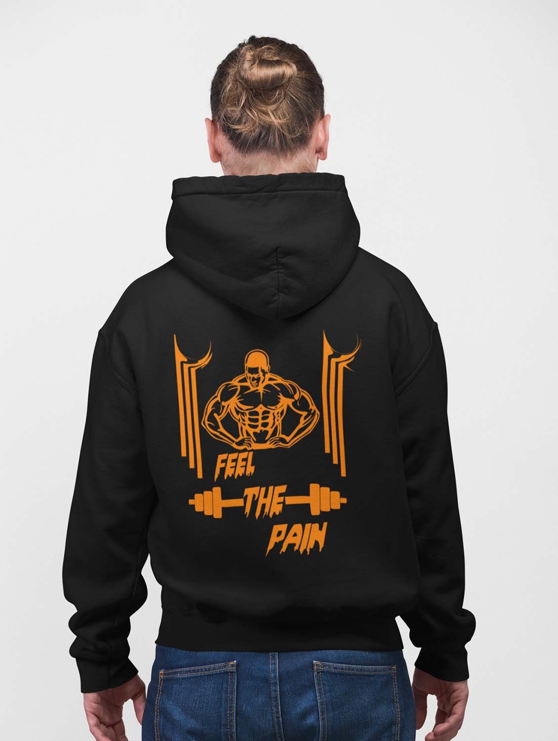 Feel The Pain, Curved Lines printed artswear black hoodies for winter casual wear specially for Men