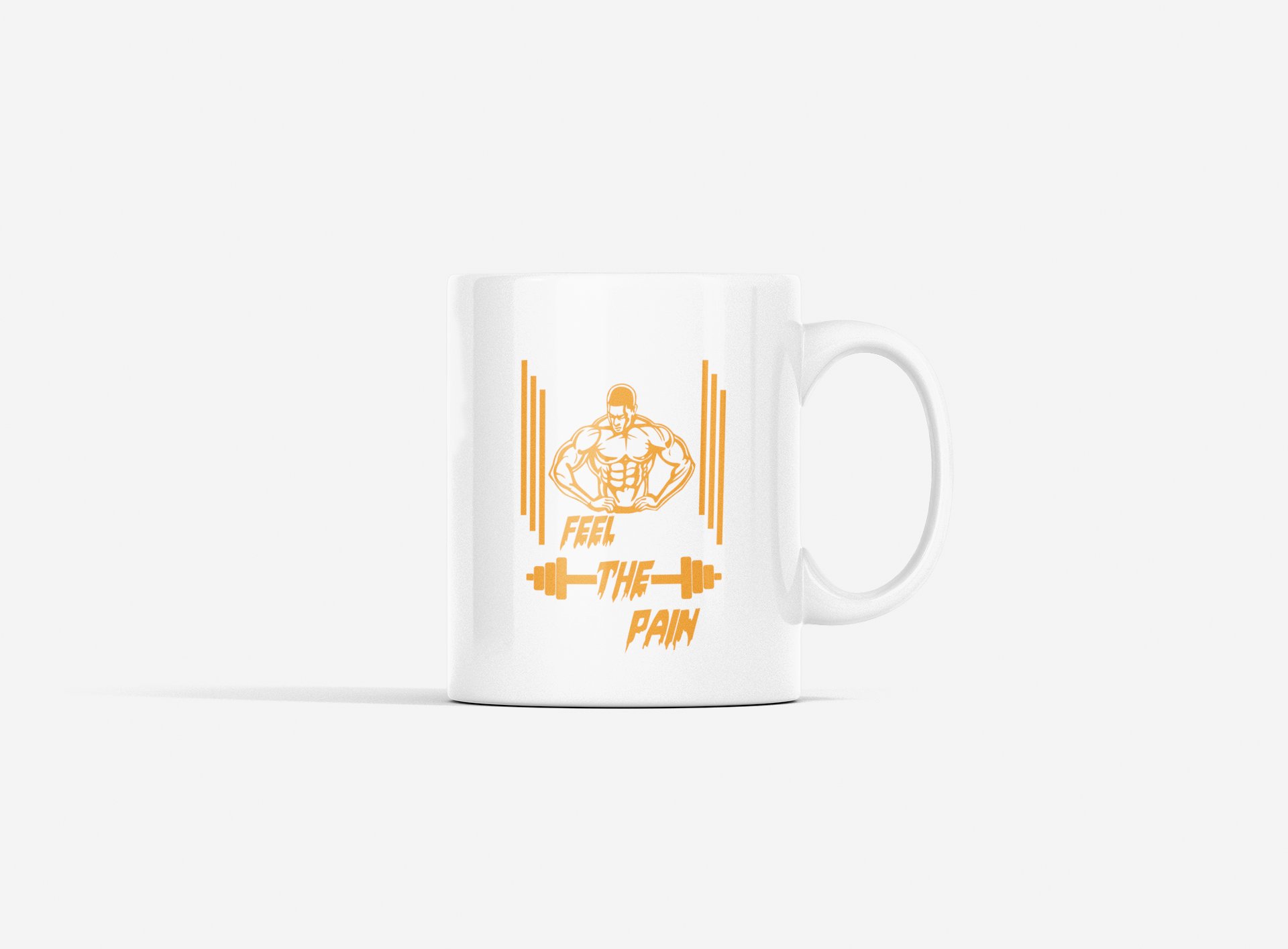 Feel The Pain, Straight Lines - gym themed printed ceramic white coffee and tea mugs/ cups for gym lovers