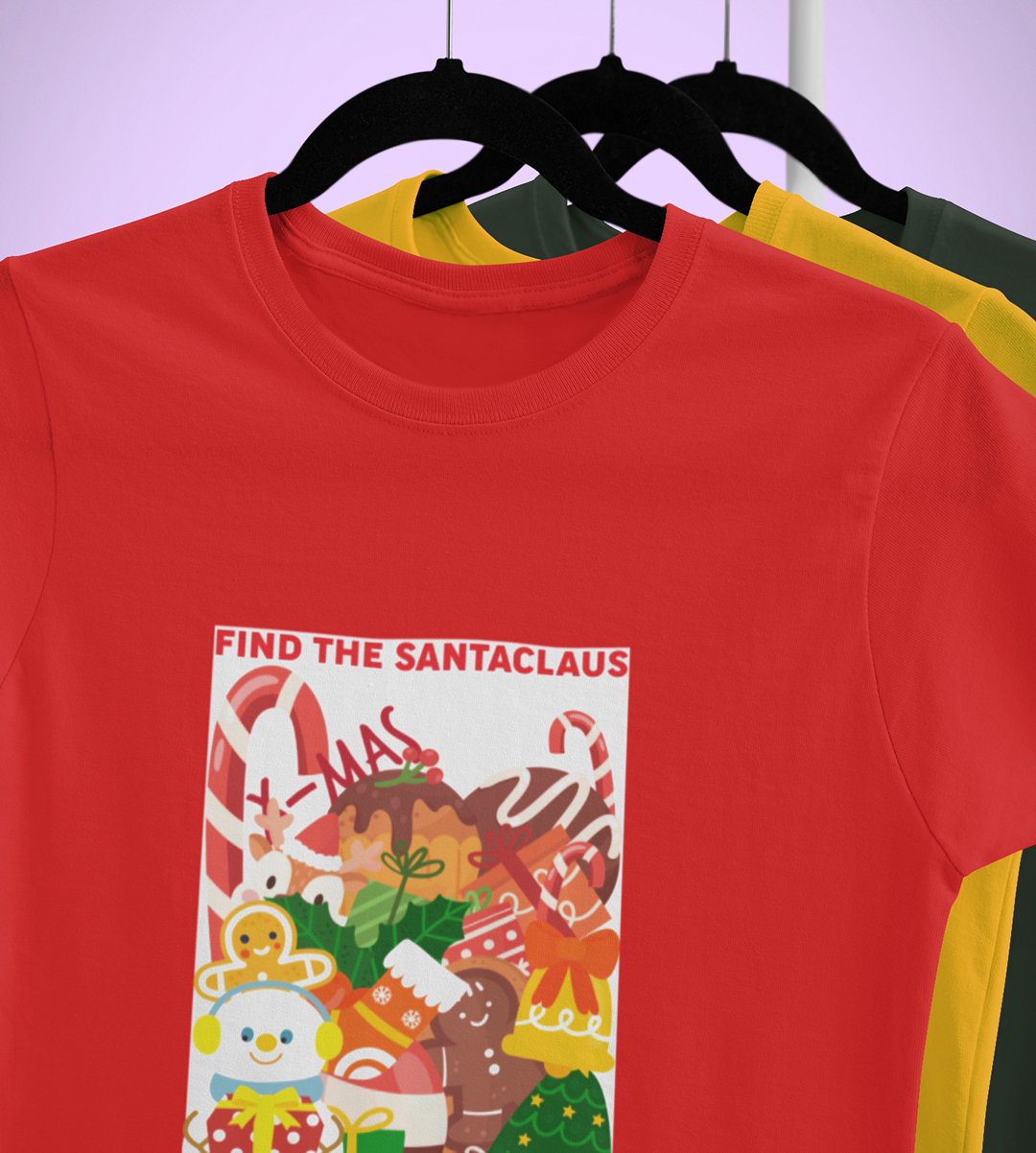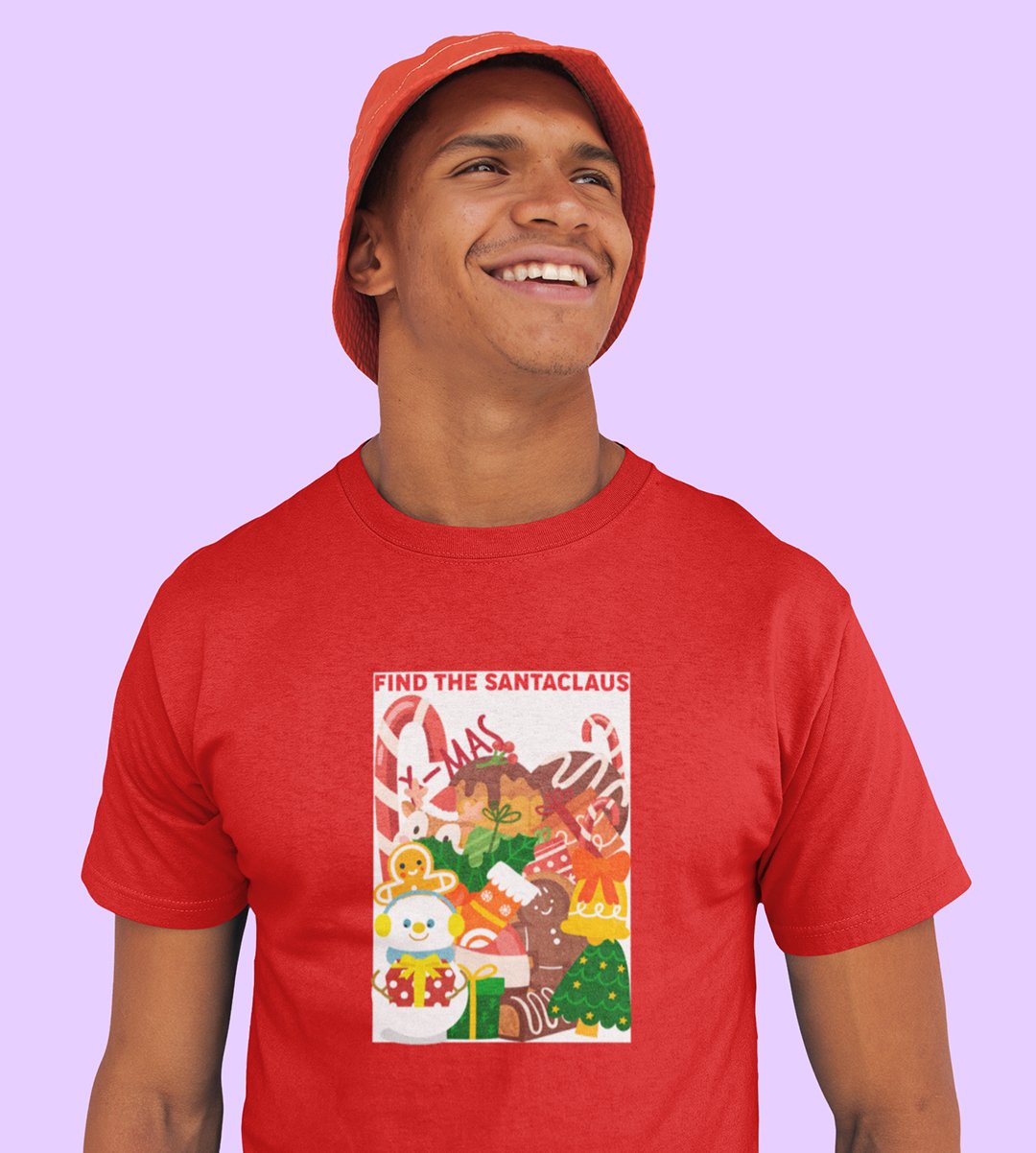 Find The Santa : Beautifully Crafted T-shirt (Red) Perfect Gift For Kids