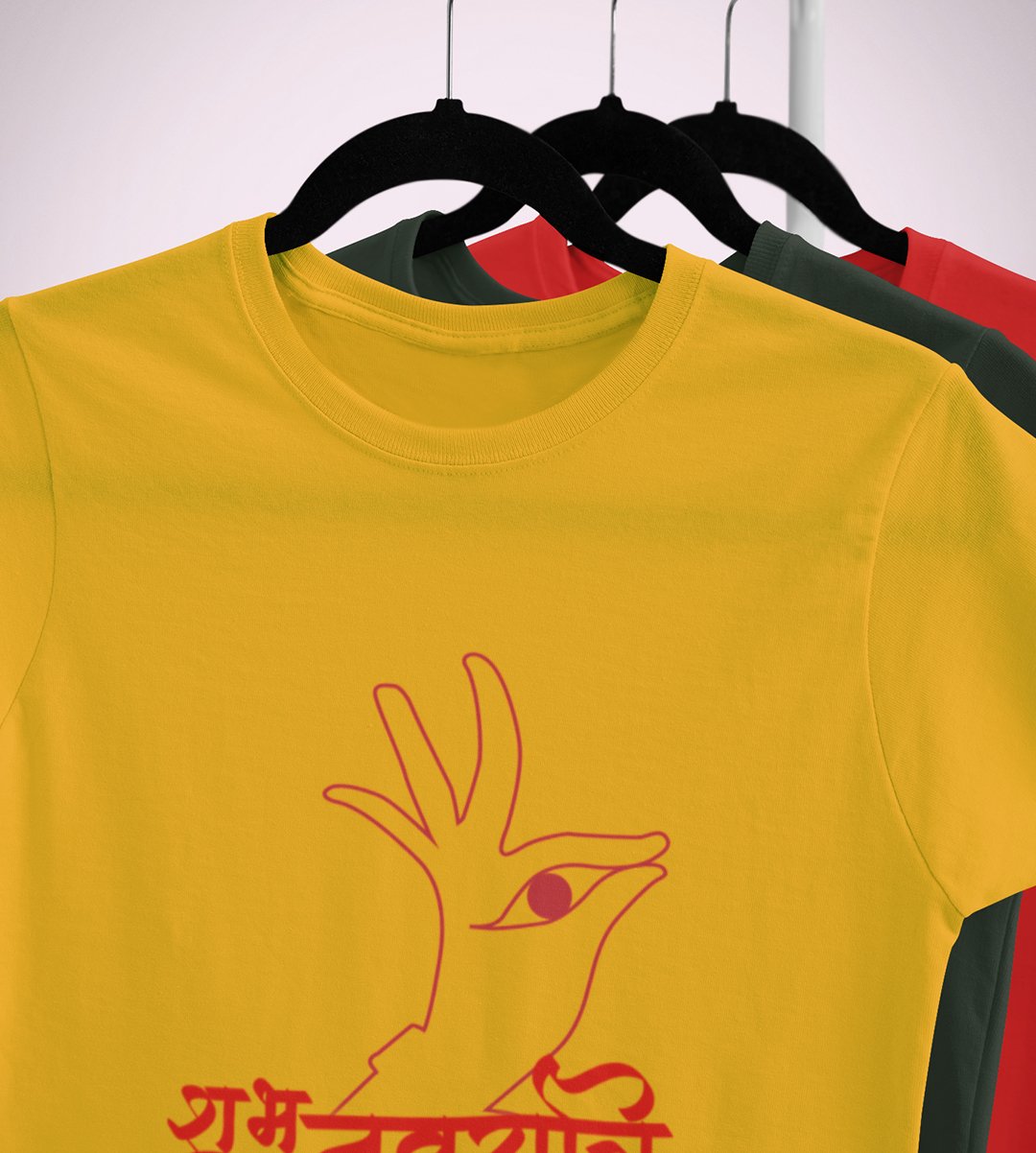Navratri is a very auspicious festival for hindus. It takes place at the beginning of October and sometimes September. Enjoy the 9 days of festivities with full zeal and make yourself submerged in the love of Maa Durga. Navratri is also known as Durga Puja. And with this Tees, you can shine like a star during this festive season with our navratri themed cotton half sleeved Tshirts. You can pair our t-shirts with trousers and denim of your choice and make it a weekday smart casual or weekend wear. This is durable. This tshirt is smooth and soft which makes you comfortable to wear during all seasons. The printing in it is durable and odourless. It has five sizes, S,M,L,XL,XXL. The Tshirt colour is intact even after repeated washes. It can be kept in your wardrobe and hangers. Please avoid washing mashine to clean this Tee, it may affect the print. Hand wash only. We have brought you many navratri related designs printed on our different colour Tshirts to choose from. Grab it now.