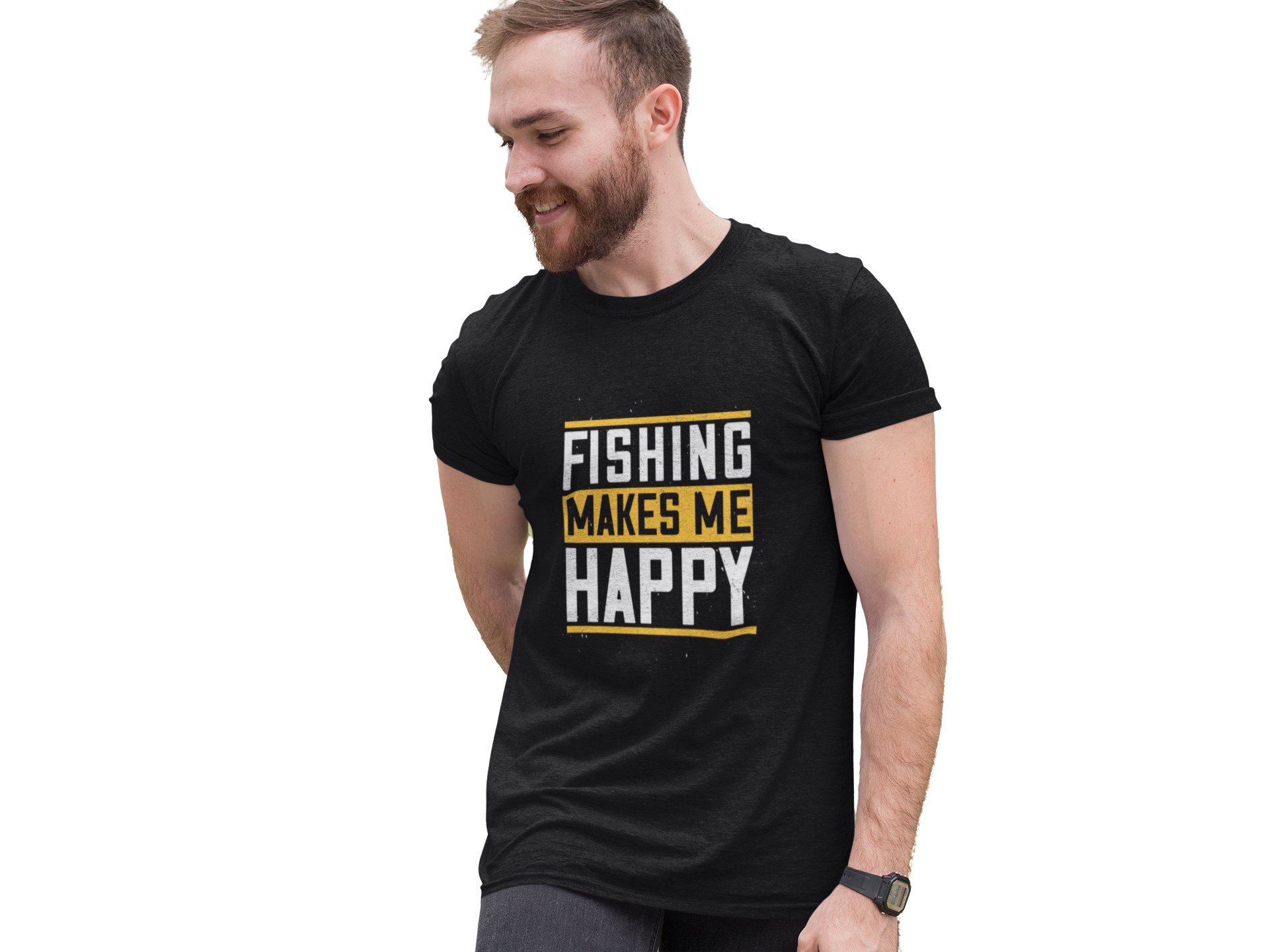 Fishing makes me happy -round crew neck cotton tshirts for men