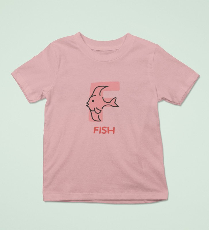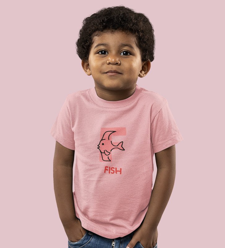 Fishy Fish, Printed Cotton Tshirt (Baby pink) for Boys