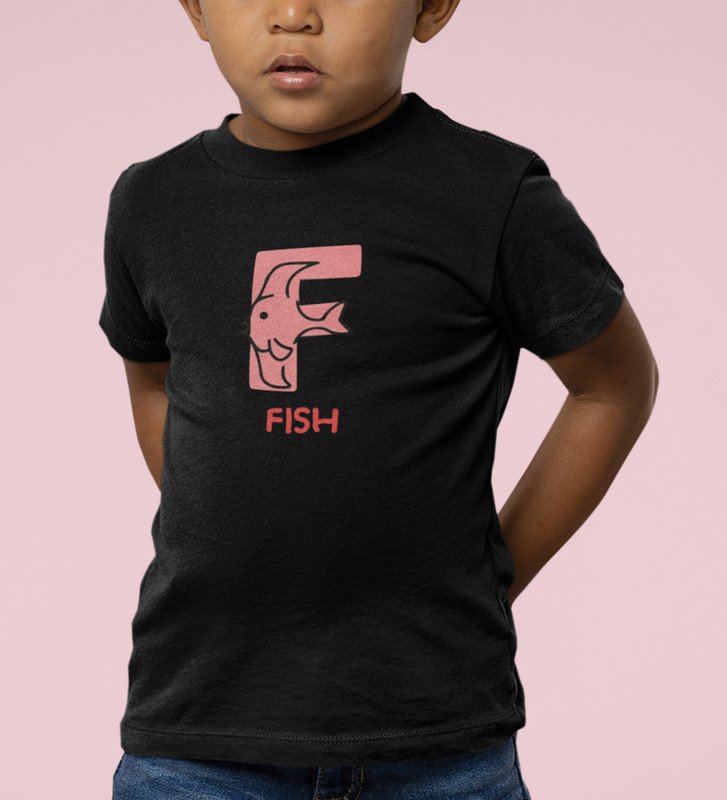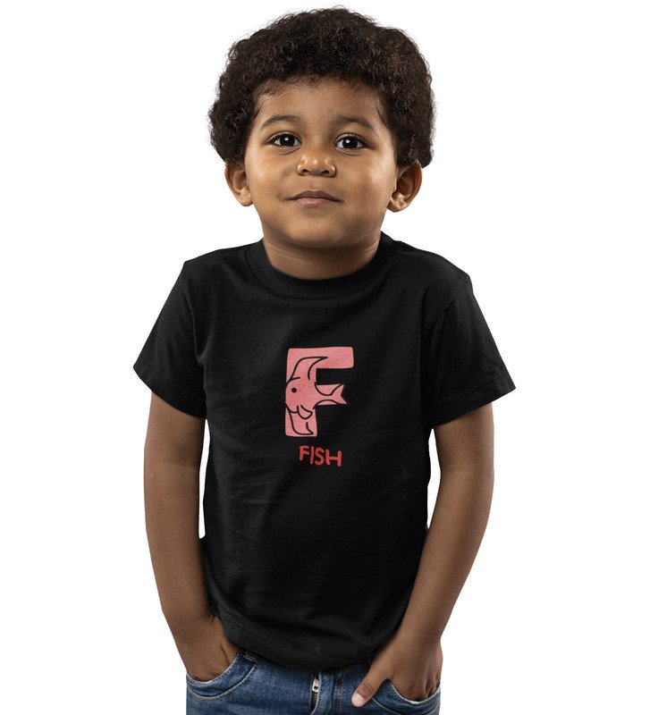 Fishy Fish, Printed Cotton Tshirt (Black) for Boys