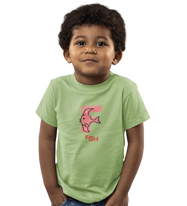 Fishy Fish, Printed Cotton Tshirt (Olive) for Boys