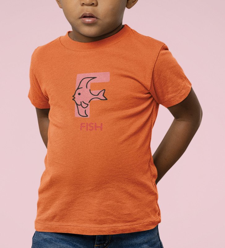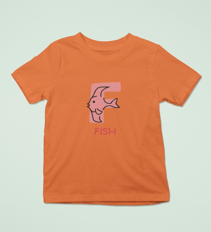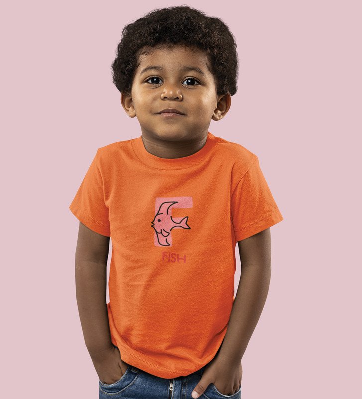 Fishy Fish, Printed Cotton Tshirt (Orange) for Boys