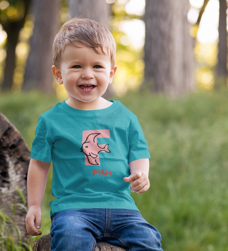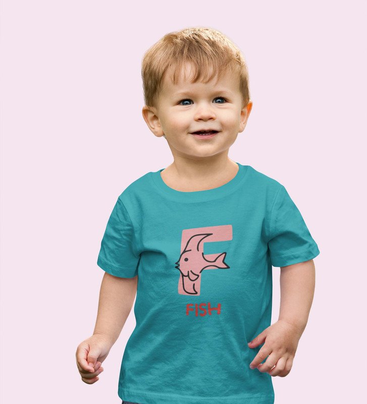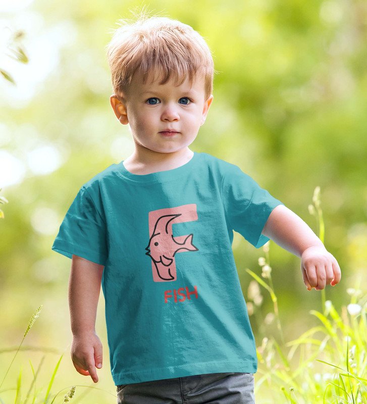 Fishy Fish, Printed Cotton tshirt (teal) for Boys