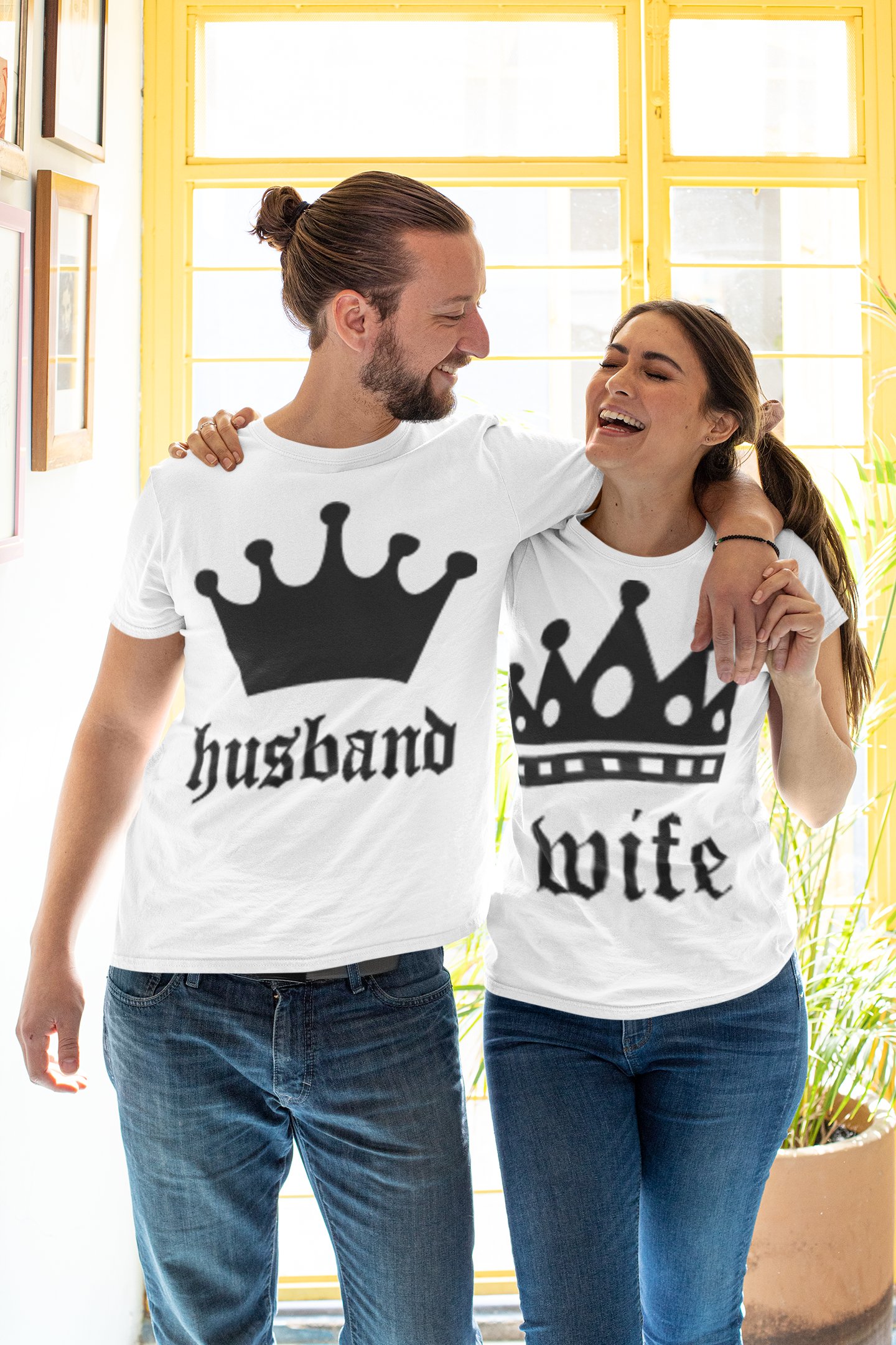 Fit Husband and Wife, Crown-Couple Printed White T-Shirts
