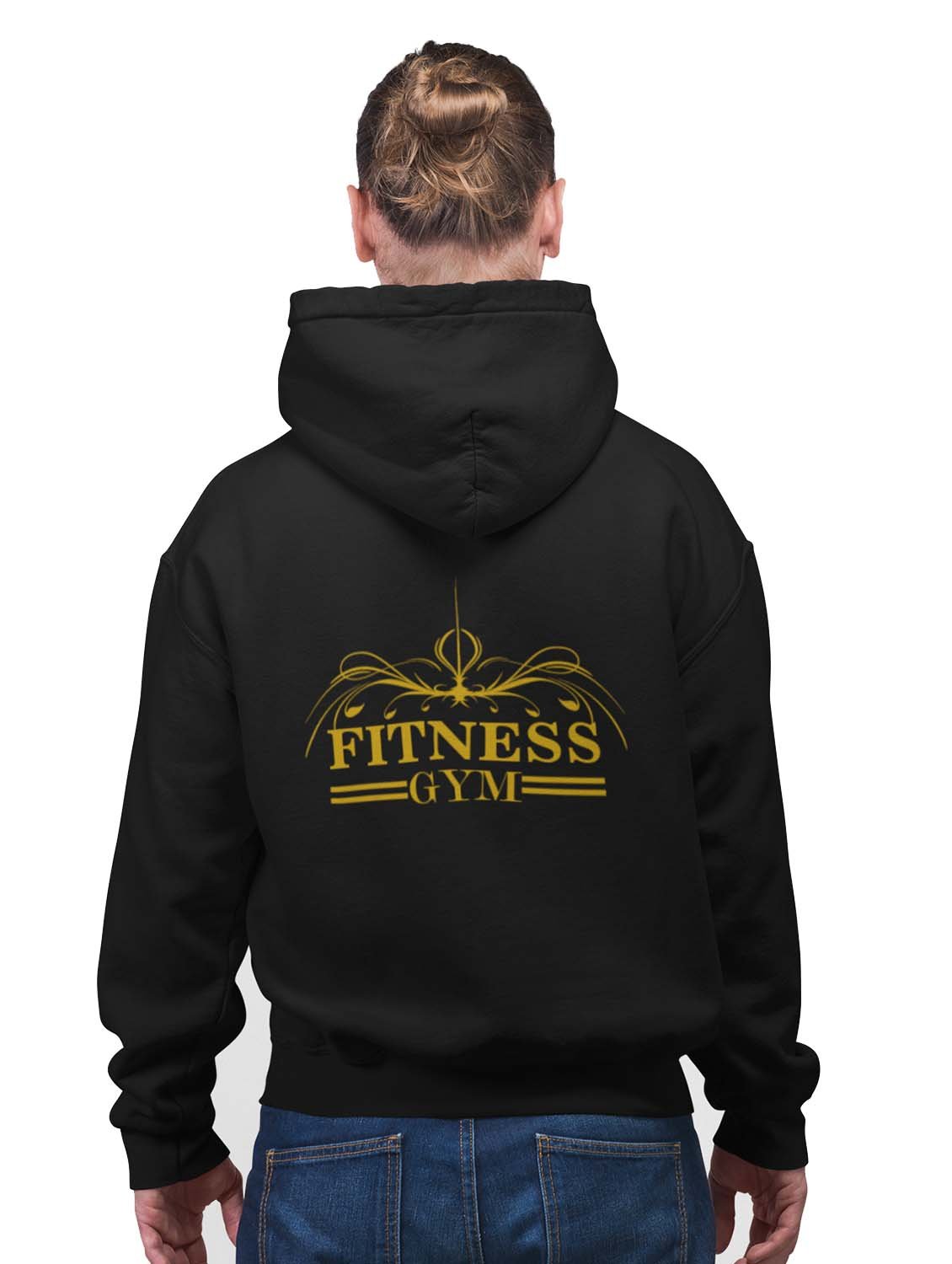 Fitness Gym, 2 Dashes (BG Golden)printed artswear black hoodies for winter casual wear specially for Men