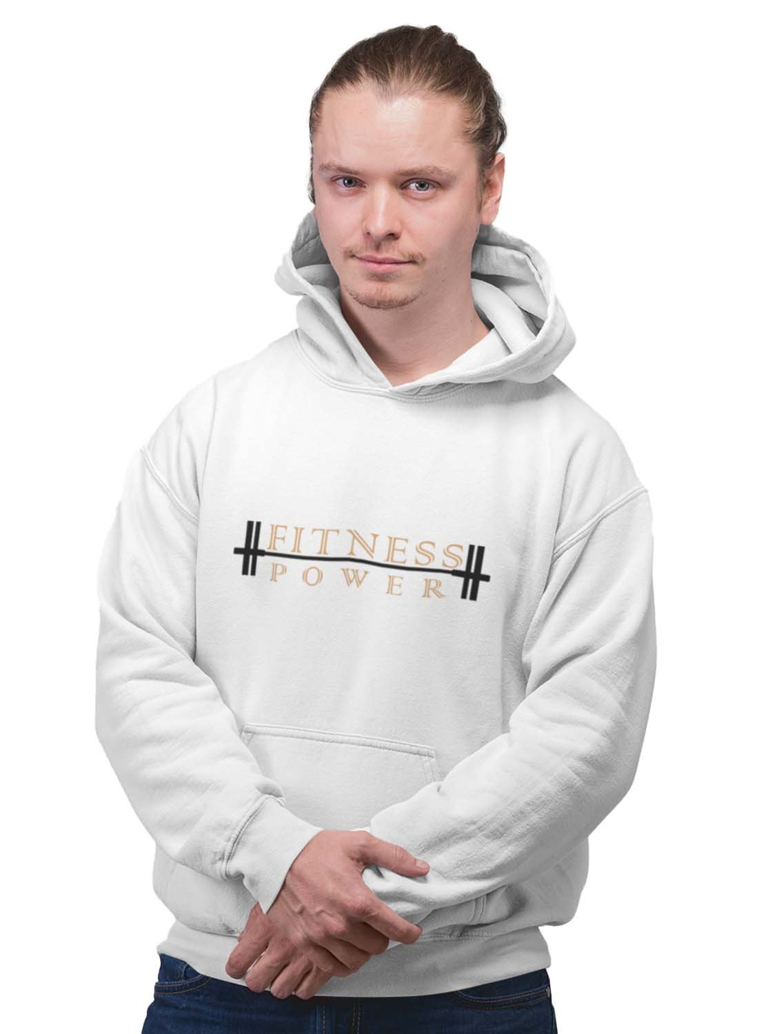 Fitness Gym Power Orange And Yellow Text printed artswear white hoodies for winter casual wear specially for Men