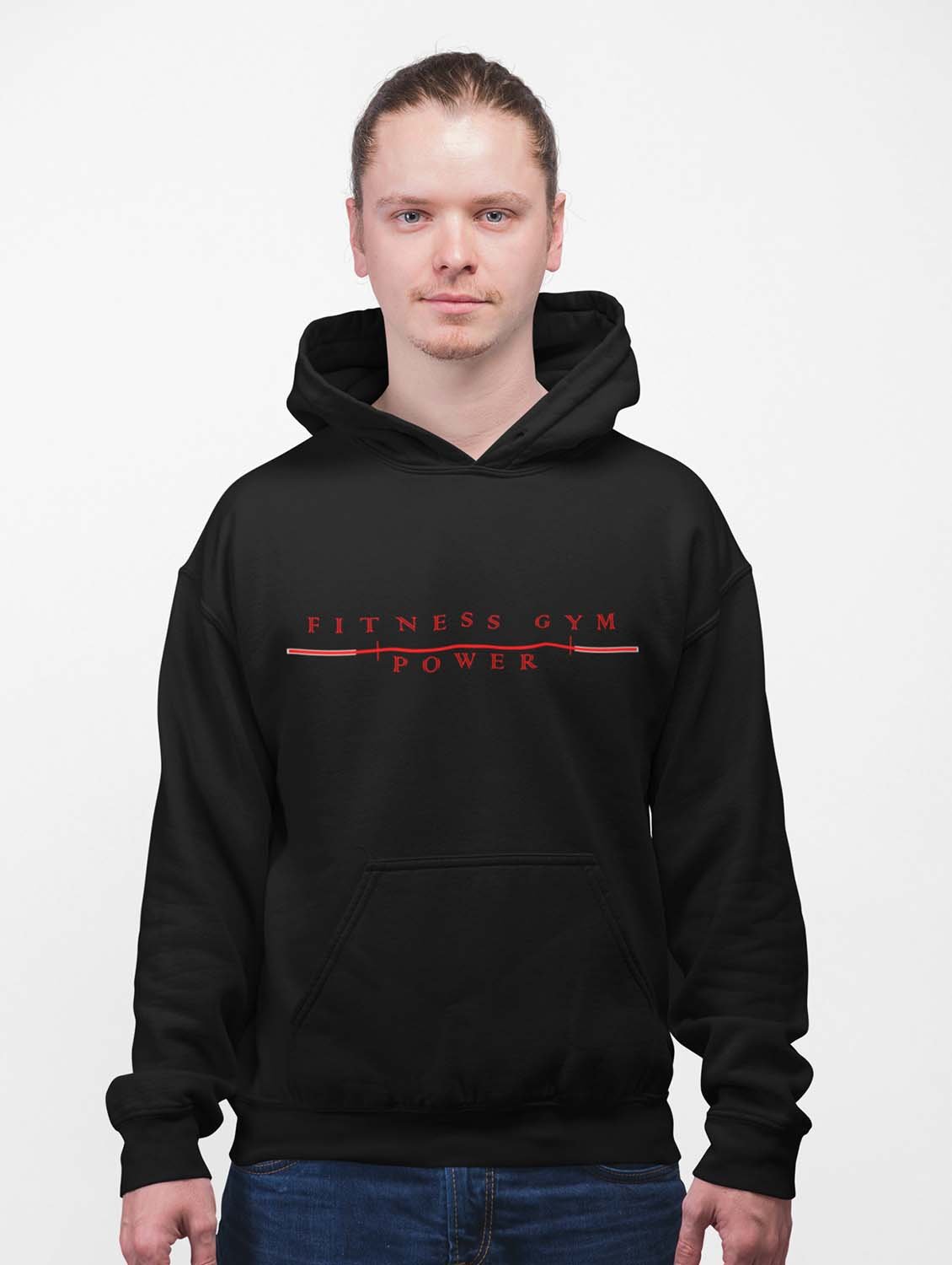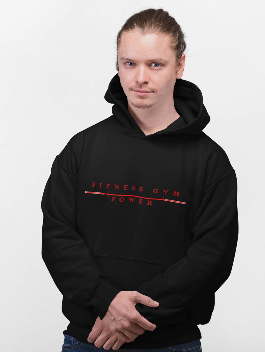 Fitness Gym(Text in Red)printed artswear black hoodies for winter casual wear specially for Men