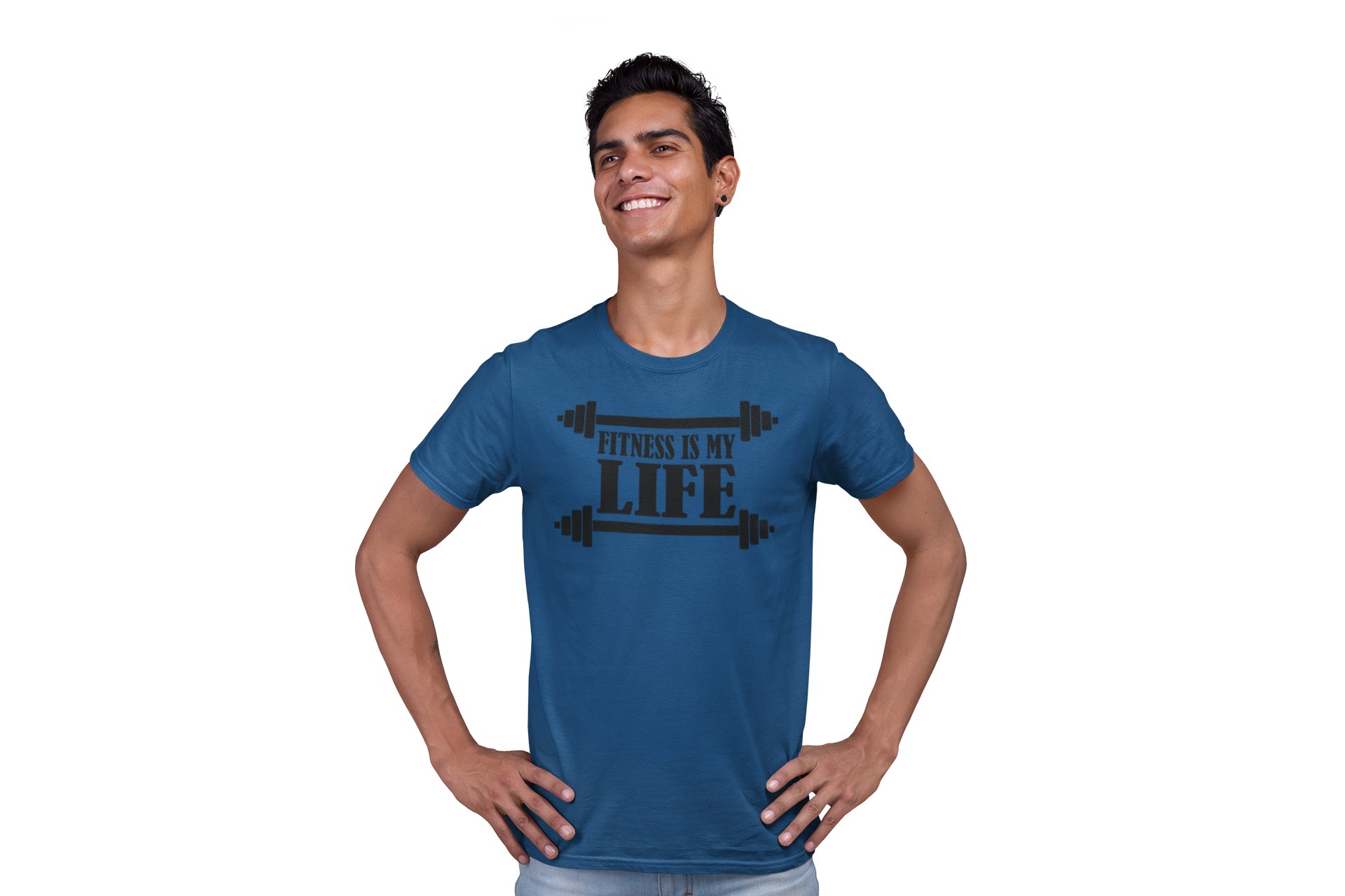 Fitness is My Life (BG Black), Round Neck Gym Tshirt (Blue Tshirt) - Clothes for Gym Lovers - Suitable for Gym Going Person - Foremost Gifting Material for Your Friends and Close Ones