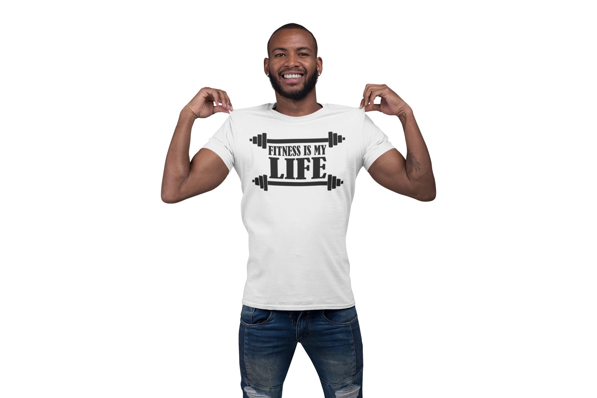 Fitness is My Life (BG Black), Round Neck Gym Tshirt (White Tshirt) - Clothes for Gym Lovers - Suitable for Gym Going Person - Foremost Gifting Material for Your Friends and Close Ones