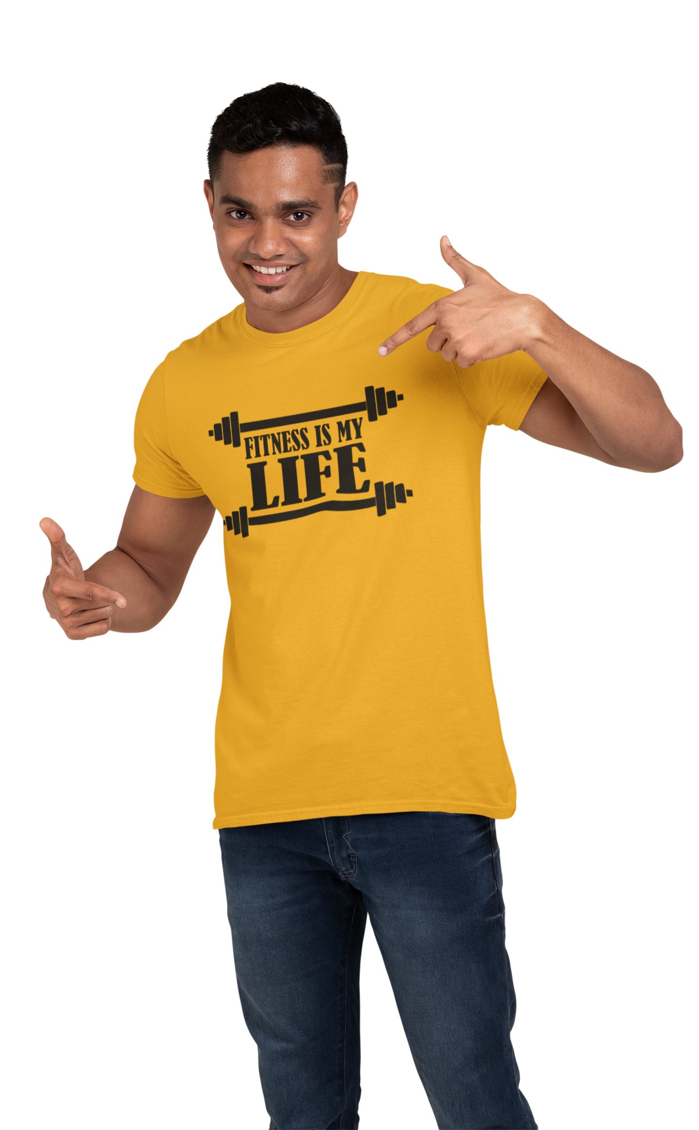 Fitness is My Life (Black), Round Neck Gym Tshirt (Yellow Tshirt) - Clothes for Gym Lovers - Foremost Gifting Material for Your Friends and Close Ones