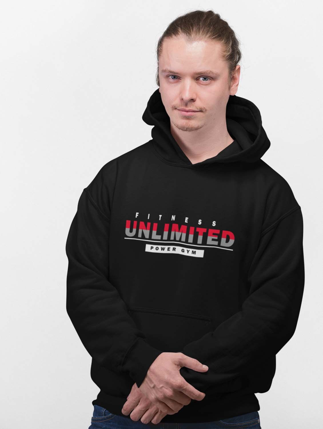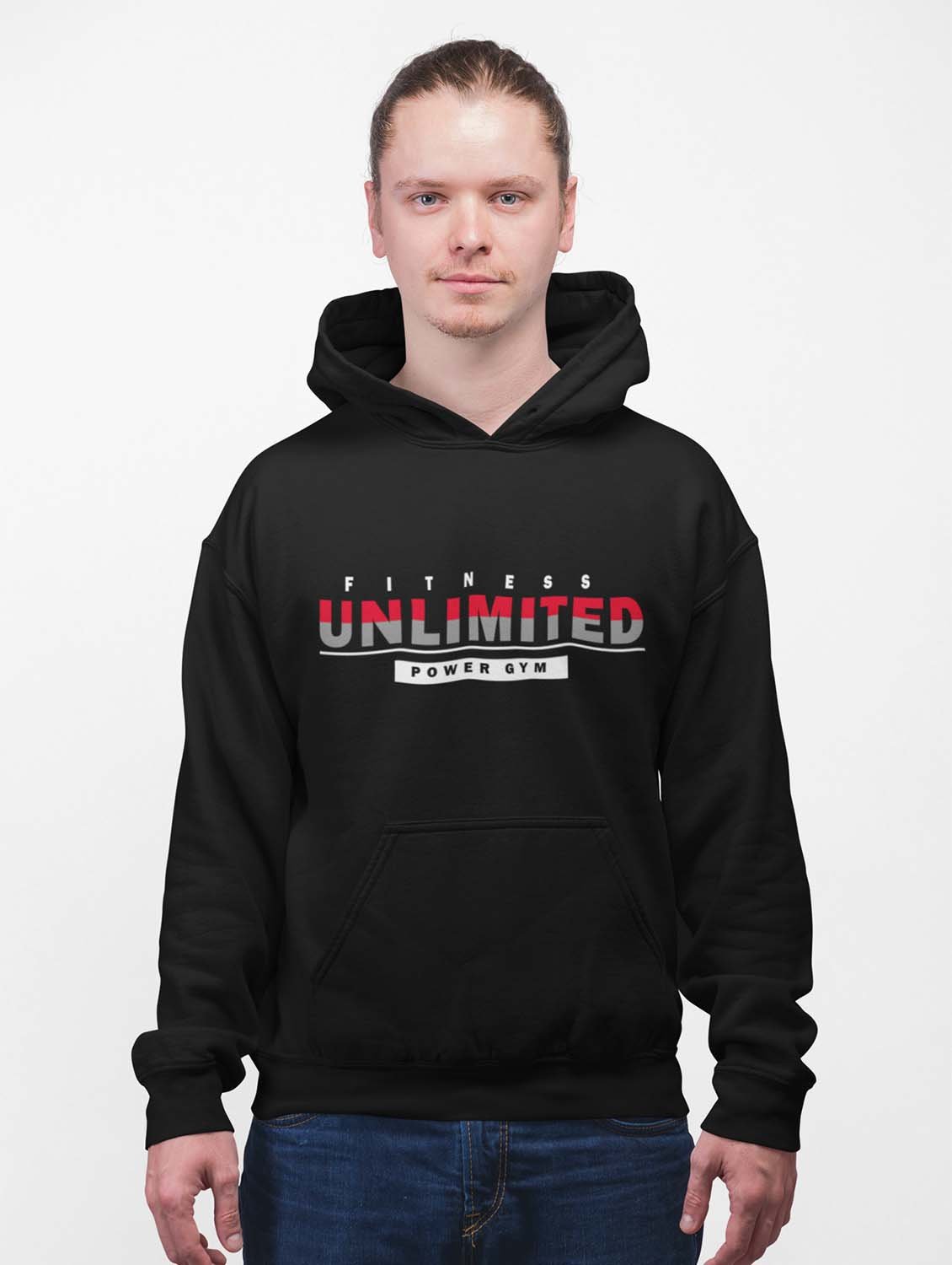 Fitness, Unlimited, Power Gym, (BG Grey and Pink)printed artswear black hooded sweatshirt for winter casual wear specially for Men