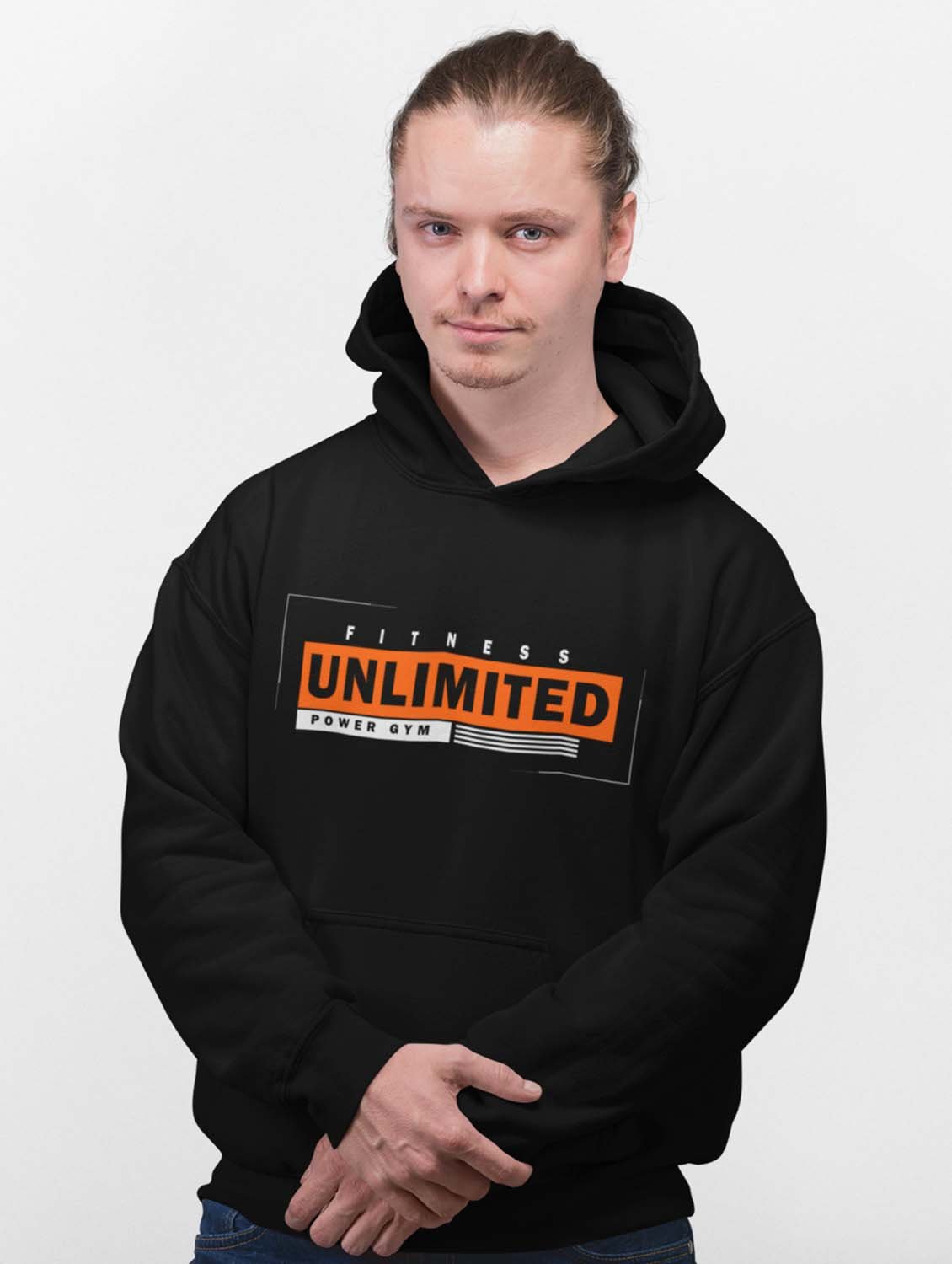Fitness, Unlimited, Power Gym printed artswear black hoodies for winter casual wear specially for Men