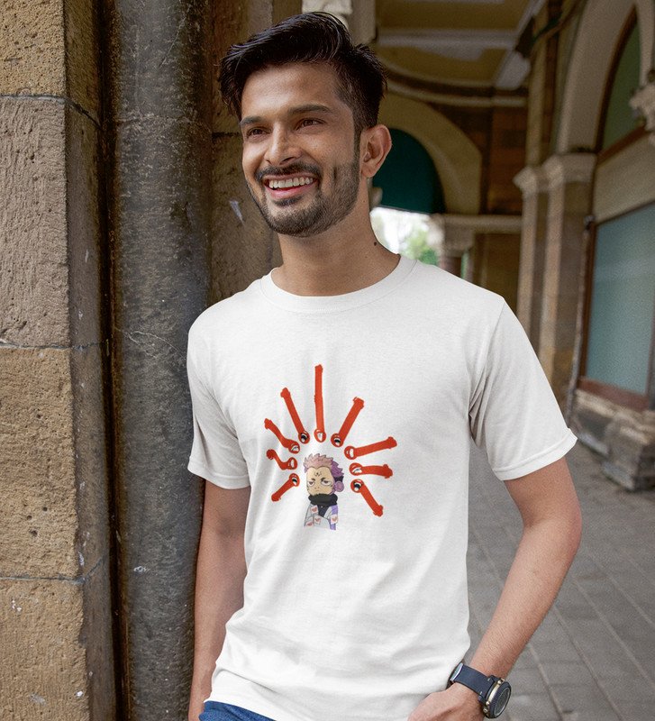 Five Faces Of Itadori Cotton White Printed Tshirt For Mens and Boys