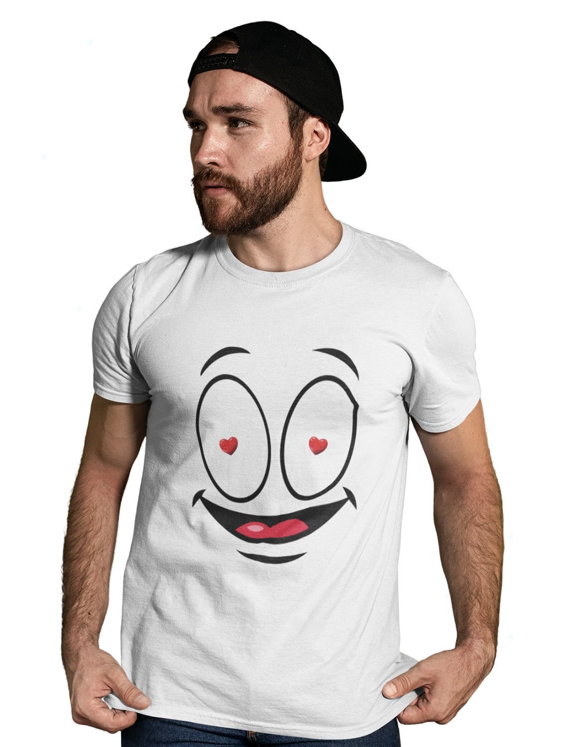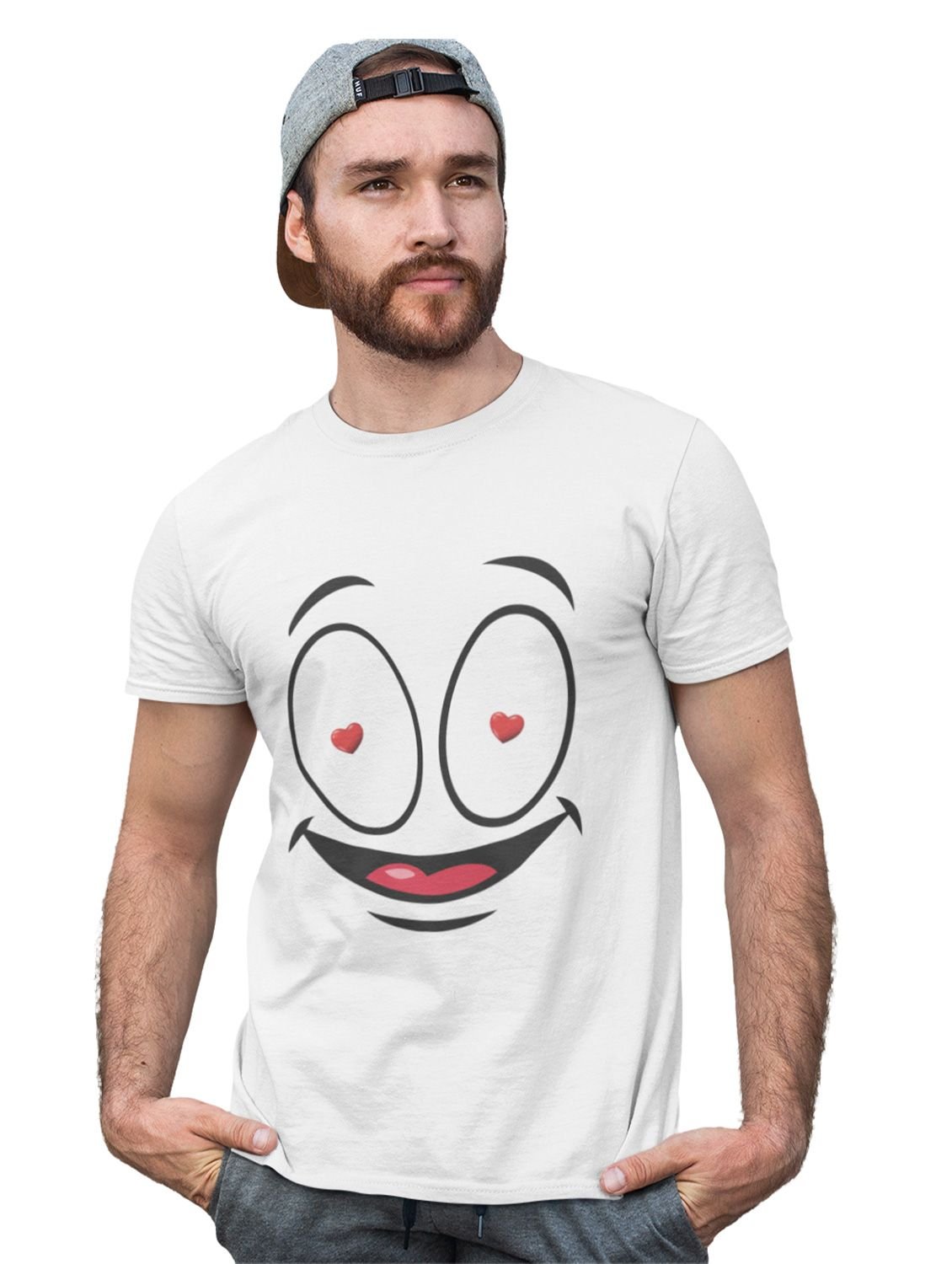 Flashing Heart in Eyes T-shirt (White) - Clothes for Emoji Lovers - Suitable for Fun Events - Foremost Gifting Material for Your Friends and Close Ones