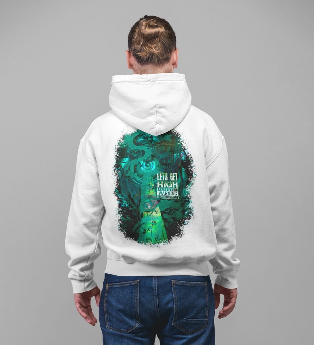 Floating in the Cosmos Let Is Get High White Cotton Printed Hoodie For Men