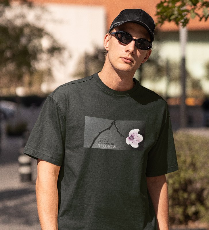 Flourish, Green Urban Legend: Men's Oversized Round Neck T-Shirt with Front Print