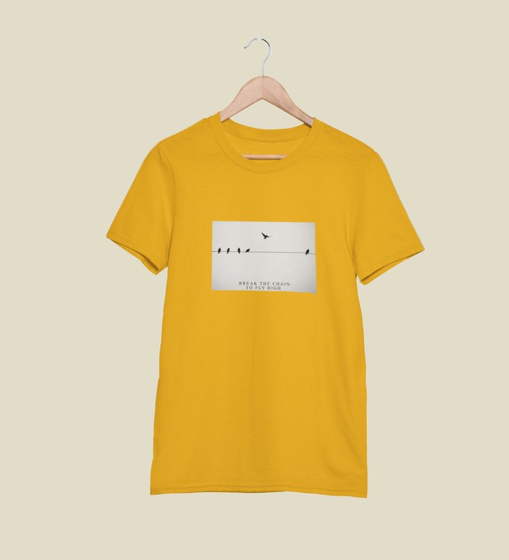 Fly High, Casual Elegance: Elevate Your Style with Yellow Trendy Front Print Tee