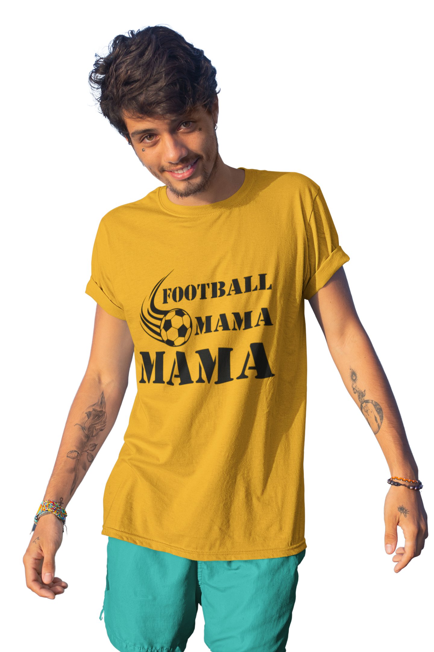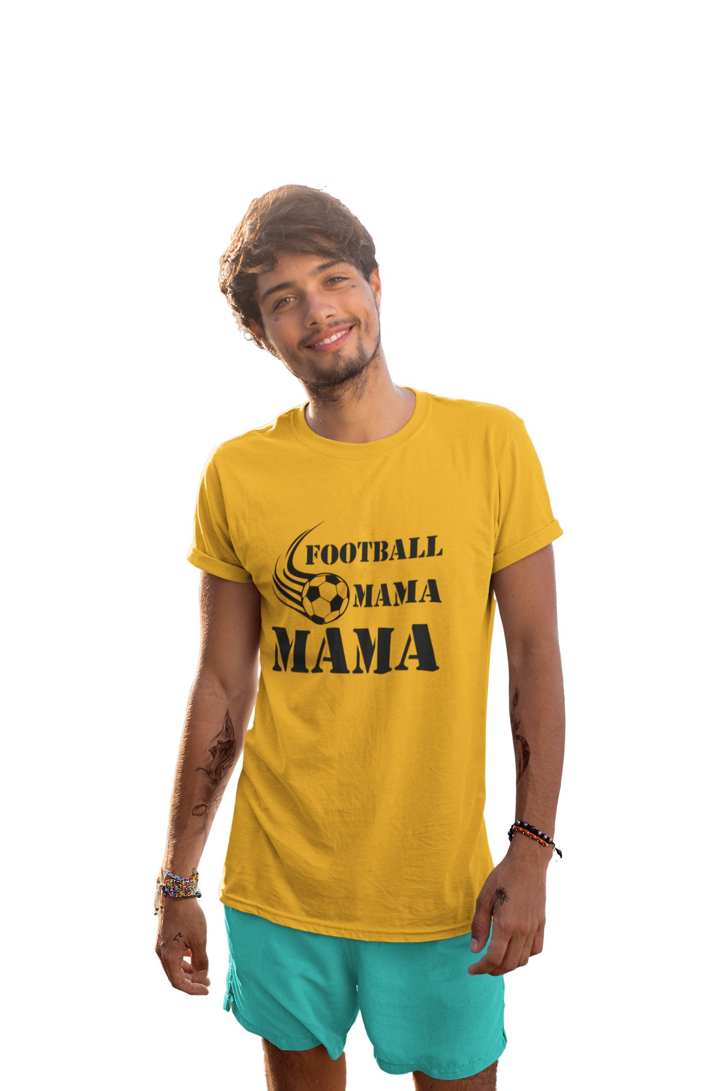 Football Mama -printed family themed cotton blended half-sleeve t-shirts made for men (yellow)