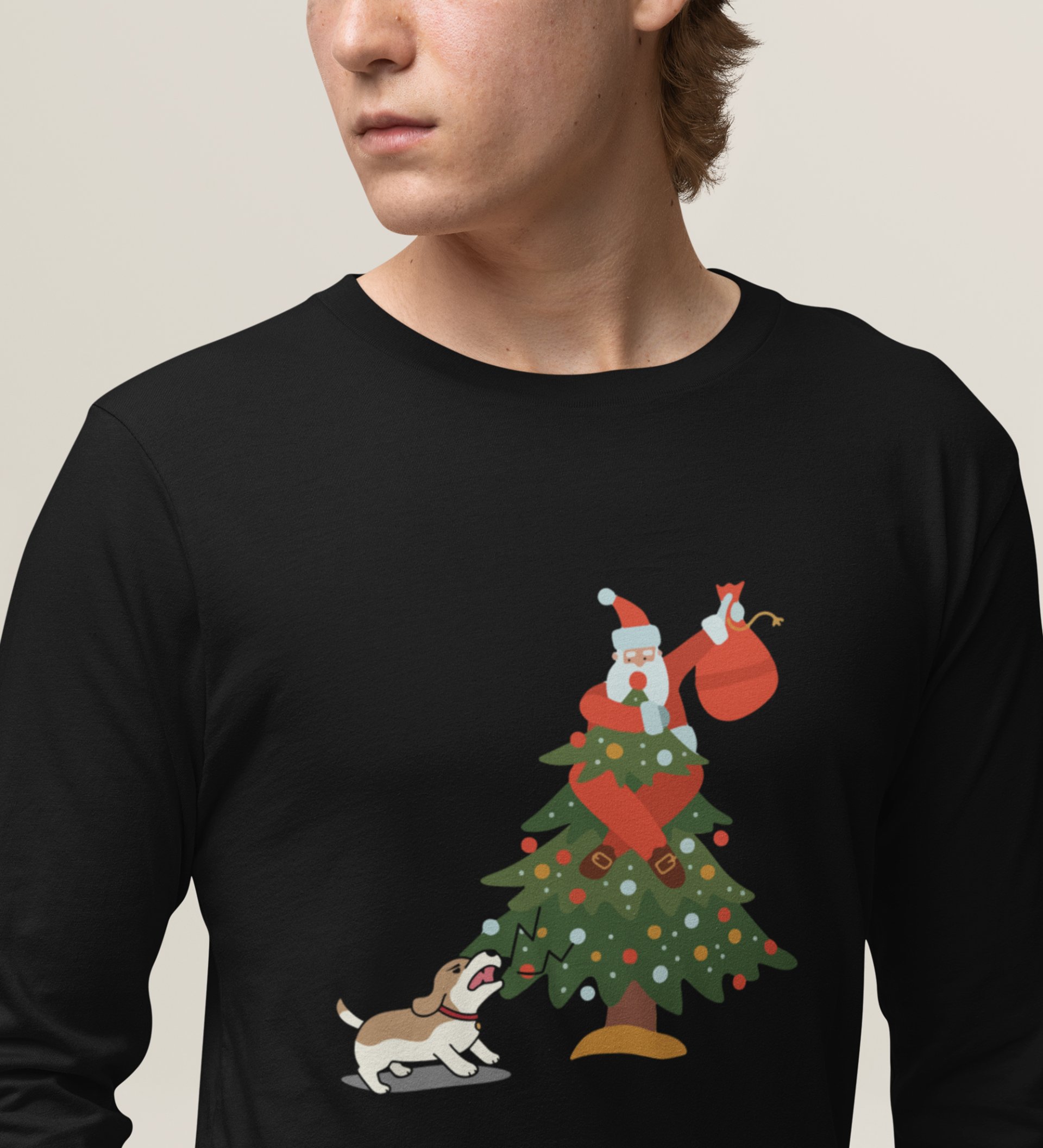 Frightened Santa: Cute DesignerFull Sleeve T-shirt For Christmas Black Best Gift For Boys Girls