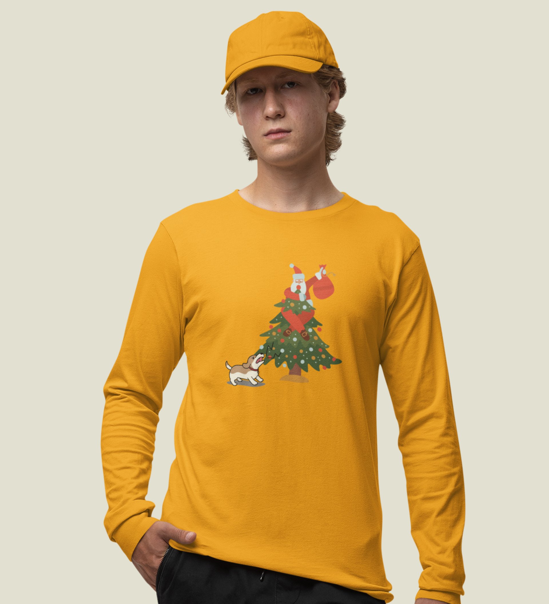 Frightened Santa: Cute DesignerFull Sleeve T-shirt For Christmas Yellow Best Gift For Boys Girls