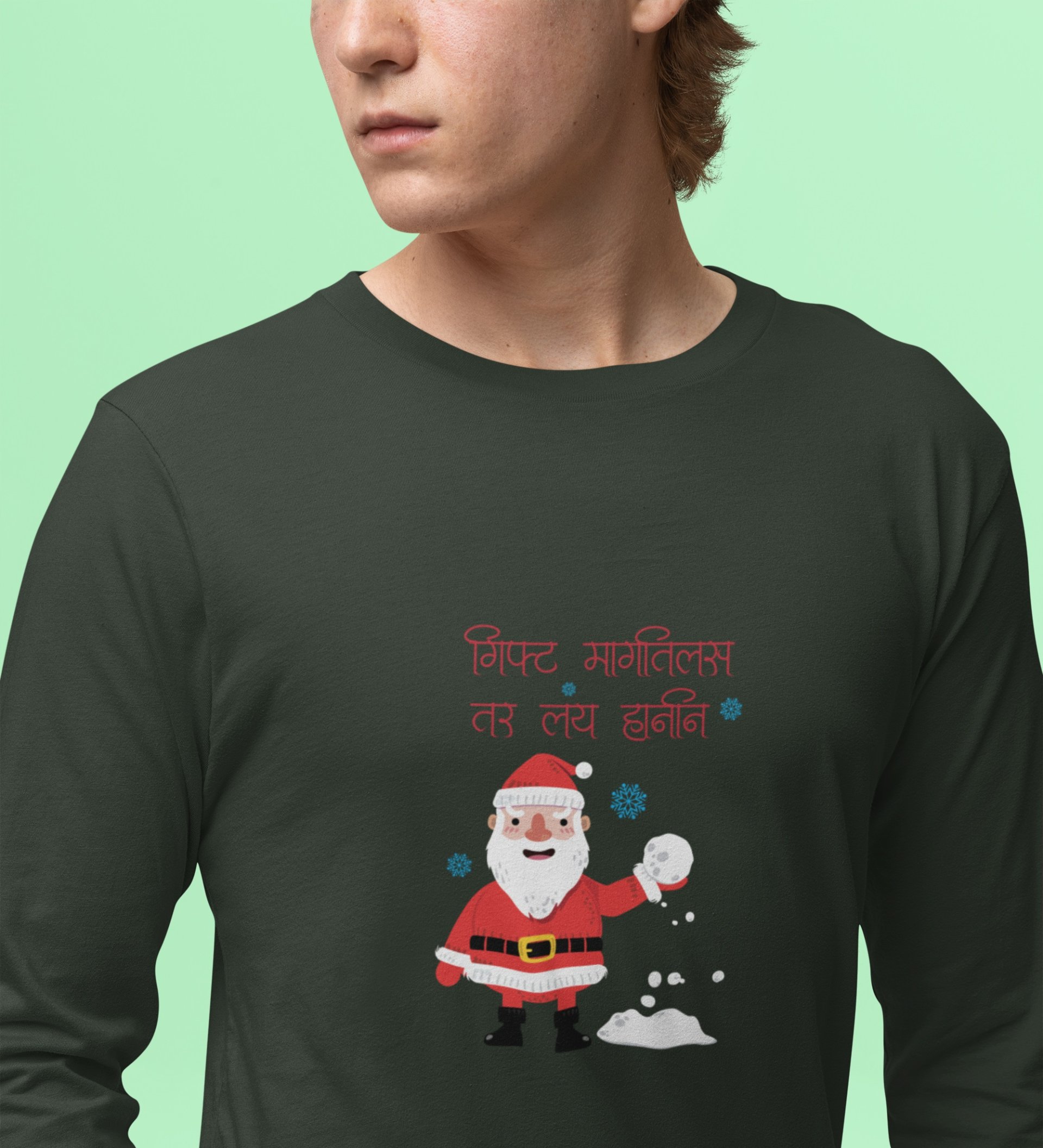 Funny Marathi Santa: Funniest DesignedFull Sleeve T-shirt Ever Green Unique Gift For Secret Santa