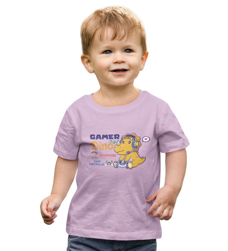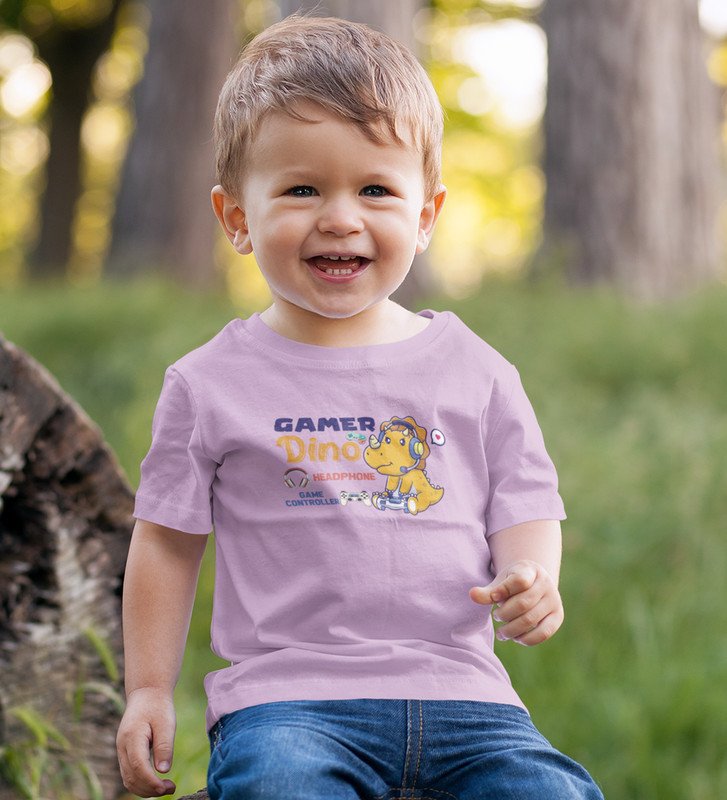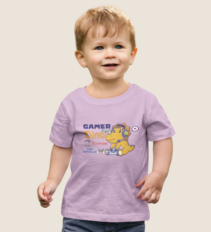 Gamer Dino, Boys Round Neck Blended Cotton T-shirt (Purple)