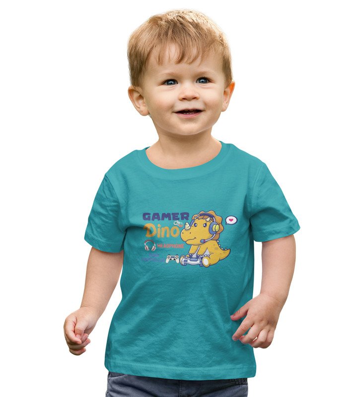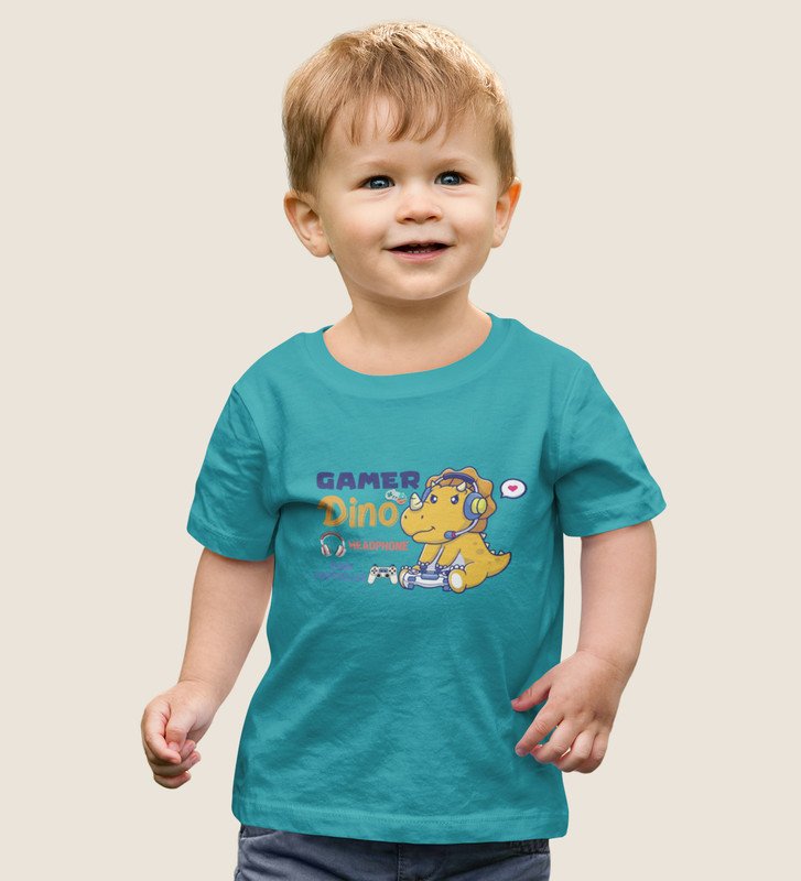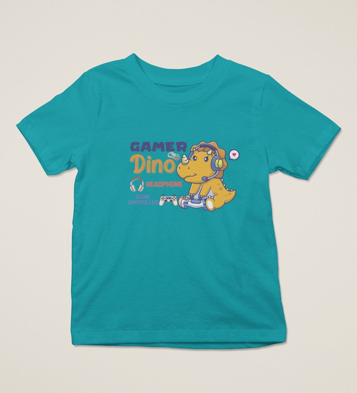Gamer Dino, Boys Round Neck Blended Cotton Tshirt (Red)