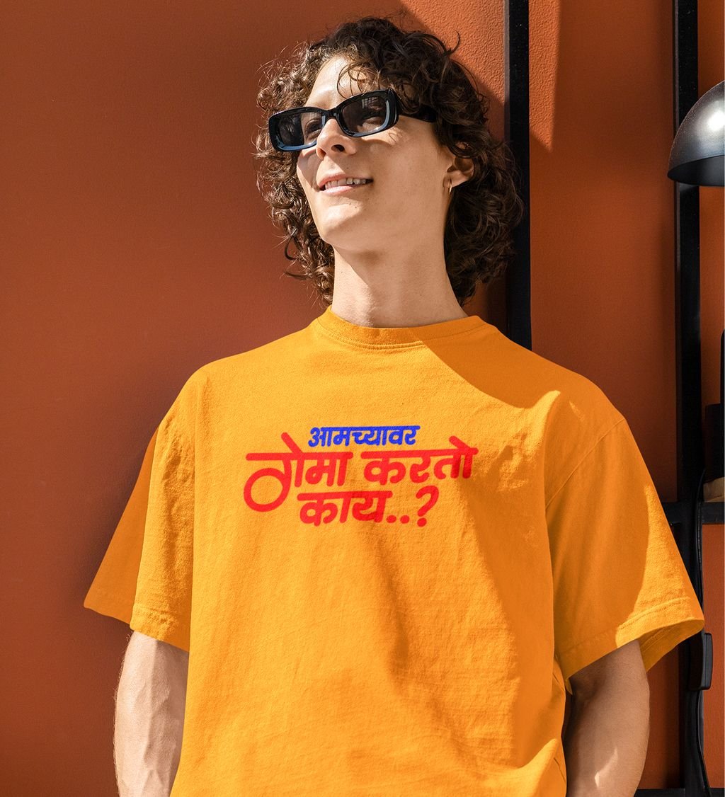 Games On Us Yellow Round Neck Cotton Half Sleeved Men T Shirt with Printed Graphics